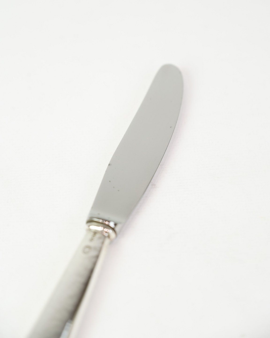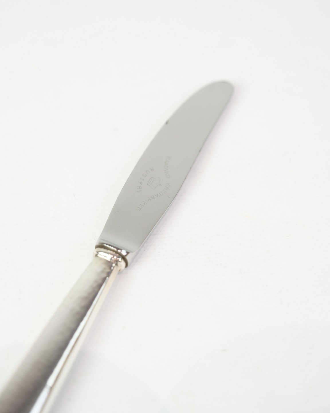 Spisekniv fra A.C. Illum, København. Tretårnet sølv stemplet 825 med stålblad, ca. midt 1900-tallet. Længde 22 cm. Illum var kendt for høj kvalitet.