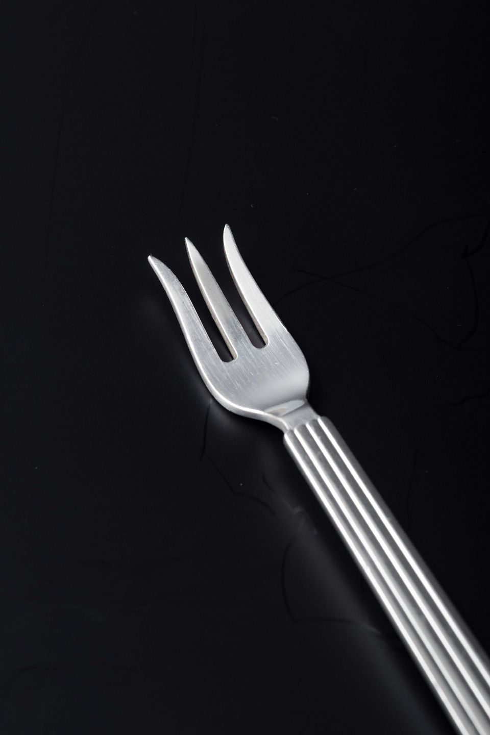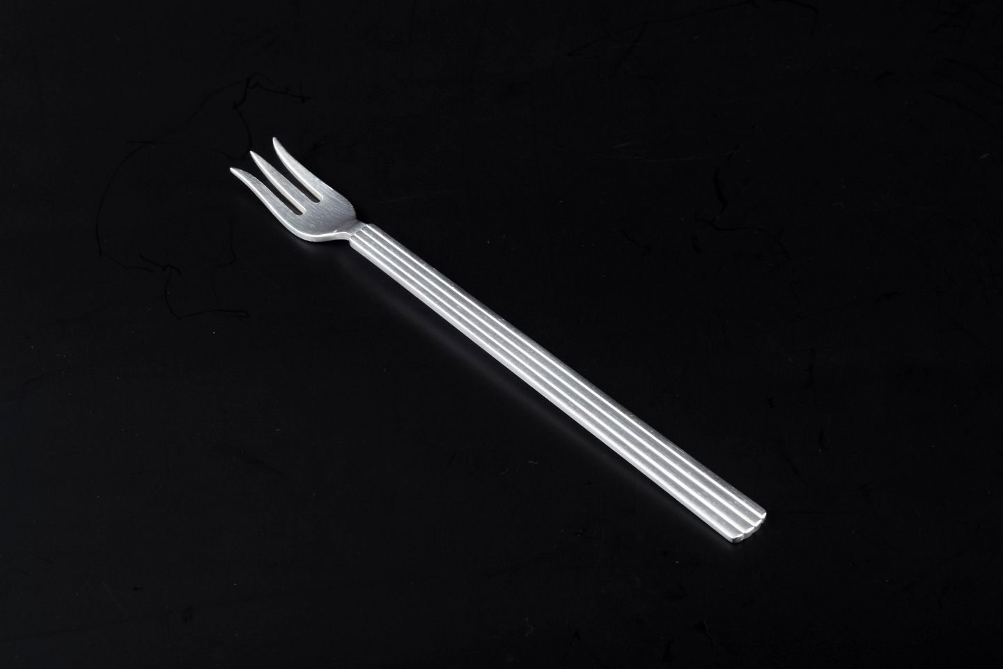 Sterling sølv østersgaffel i det ikoniske Bernadotte-mønster, designet af Sigvard Bernadotte. Det tidløse formsprog med parallelle rifler i skaftet gør bestikket til et af Georg Jensens mest populære og klassiske designs.