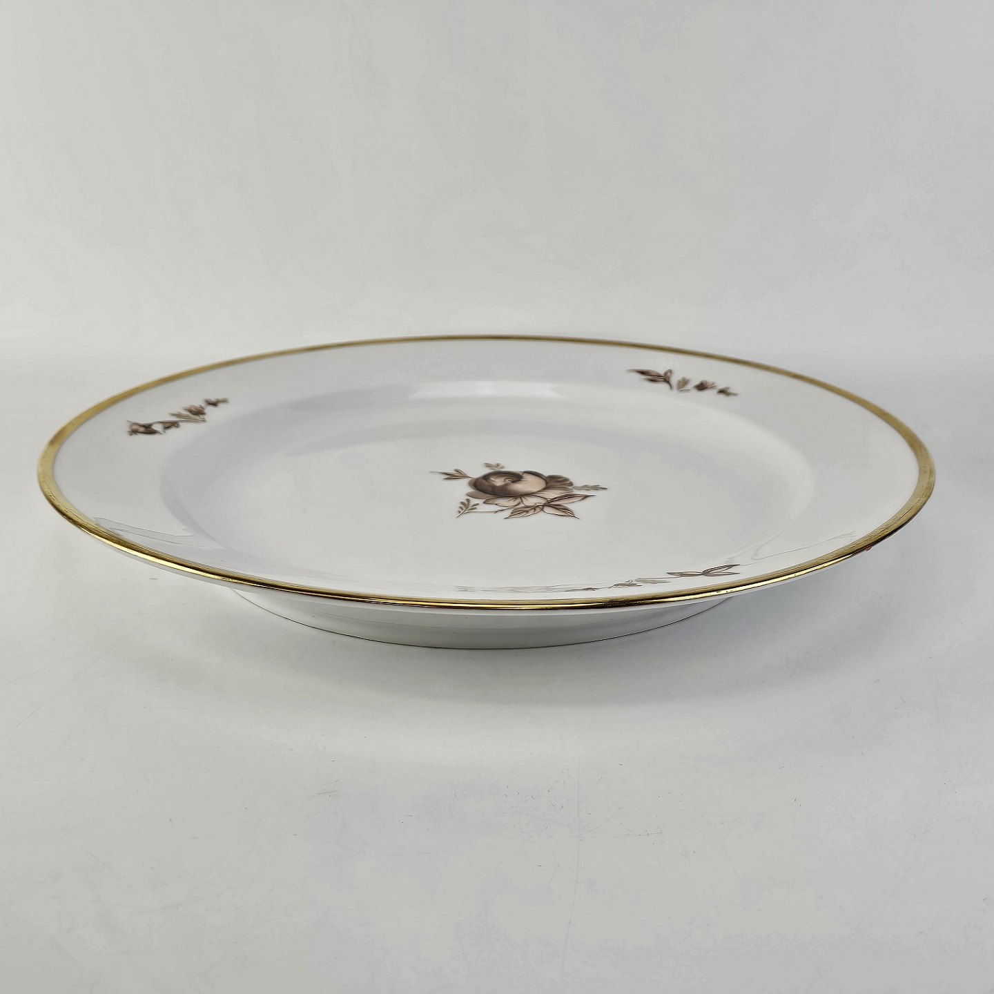 Rundt fad i porcelæn fra stellet Brun Rose