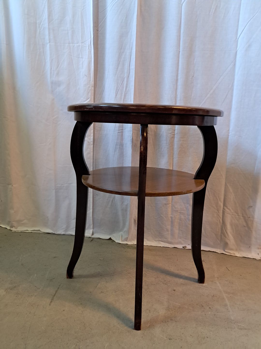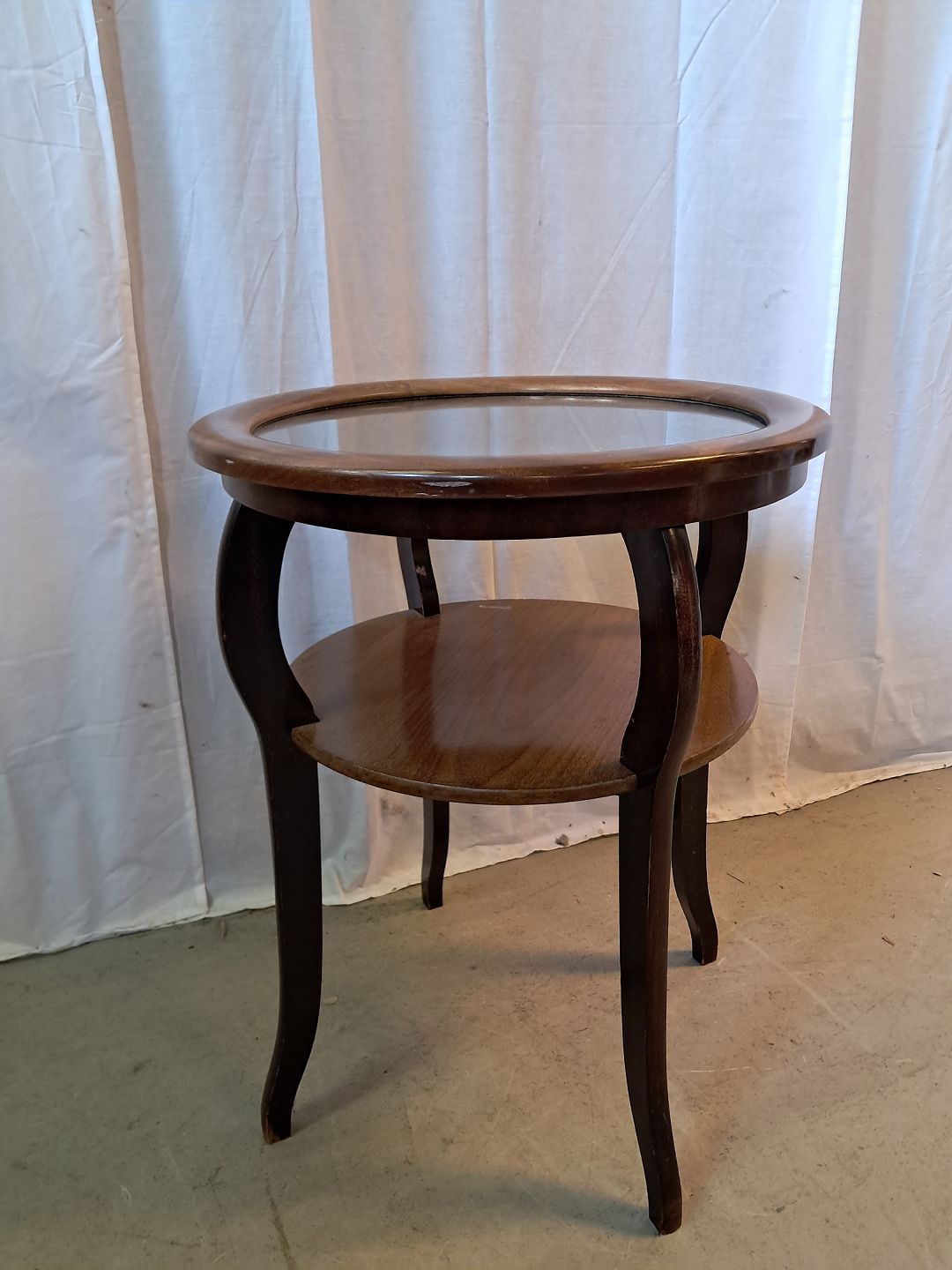 Sidebord i mahogni og bøgetræ med glasplade, fra 1920erne.