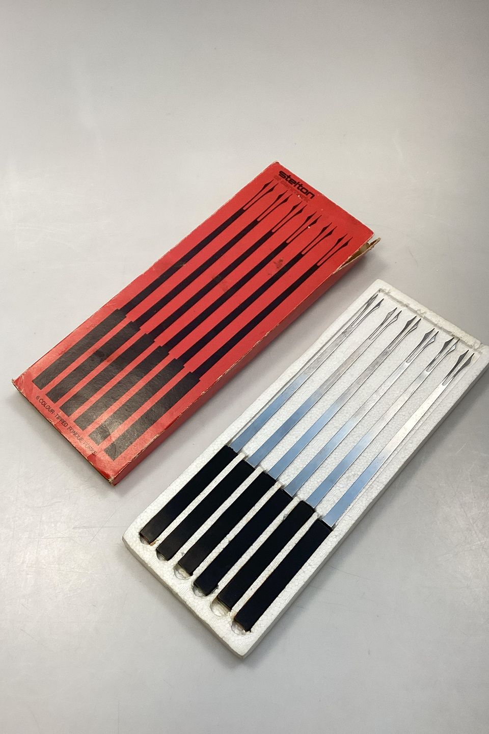 6 gafler med Sort skaft og farvemarkering. Brugt, men i god stand. Æske medfølger.