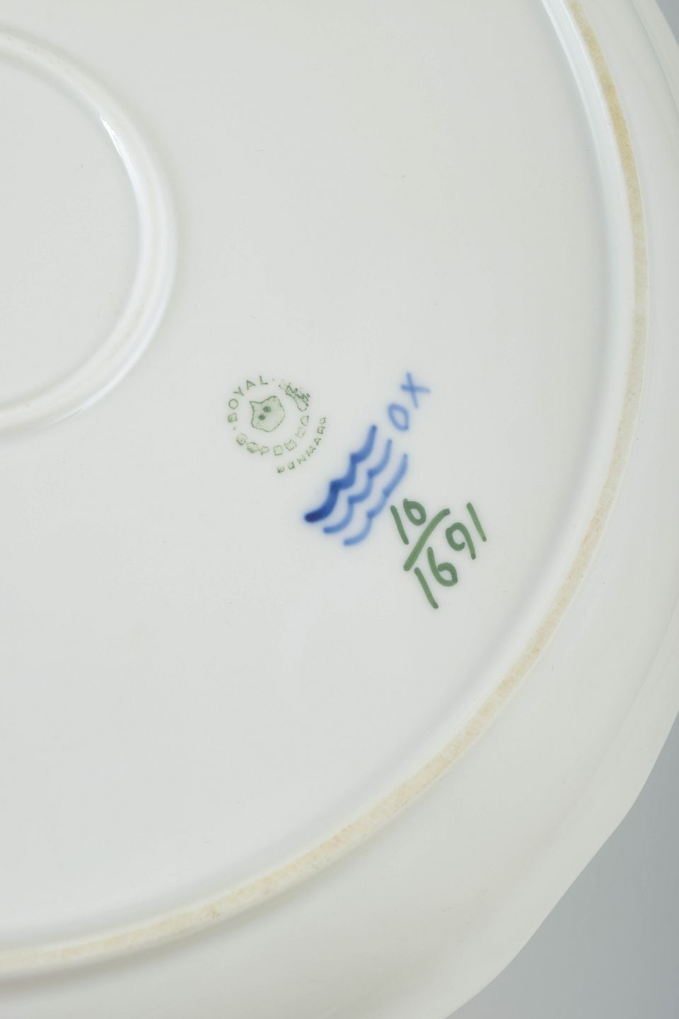 Founded in 1775, Royal Copenhagen is one of the world’s most renowned porcelain manufactories. The “Blue Flower” pattern was introduced in the late 18th century as a free floral motif inspired by European Rococo. Produced in several versions—Curved, Basketweave, and Angular—the rare editions with applied gilding were often made as special orders and are today highly sought after among collectors.