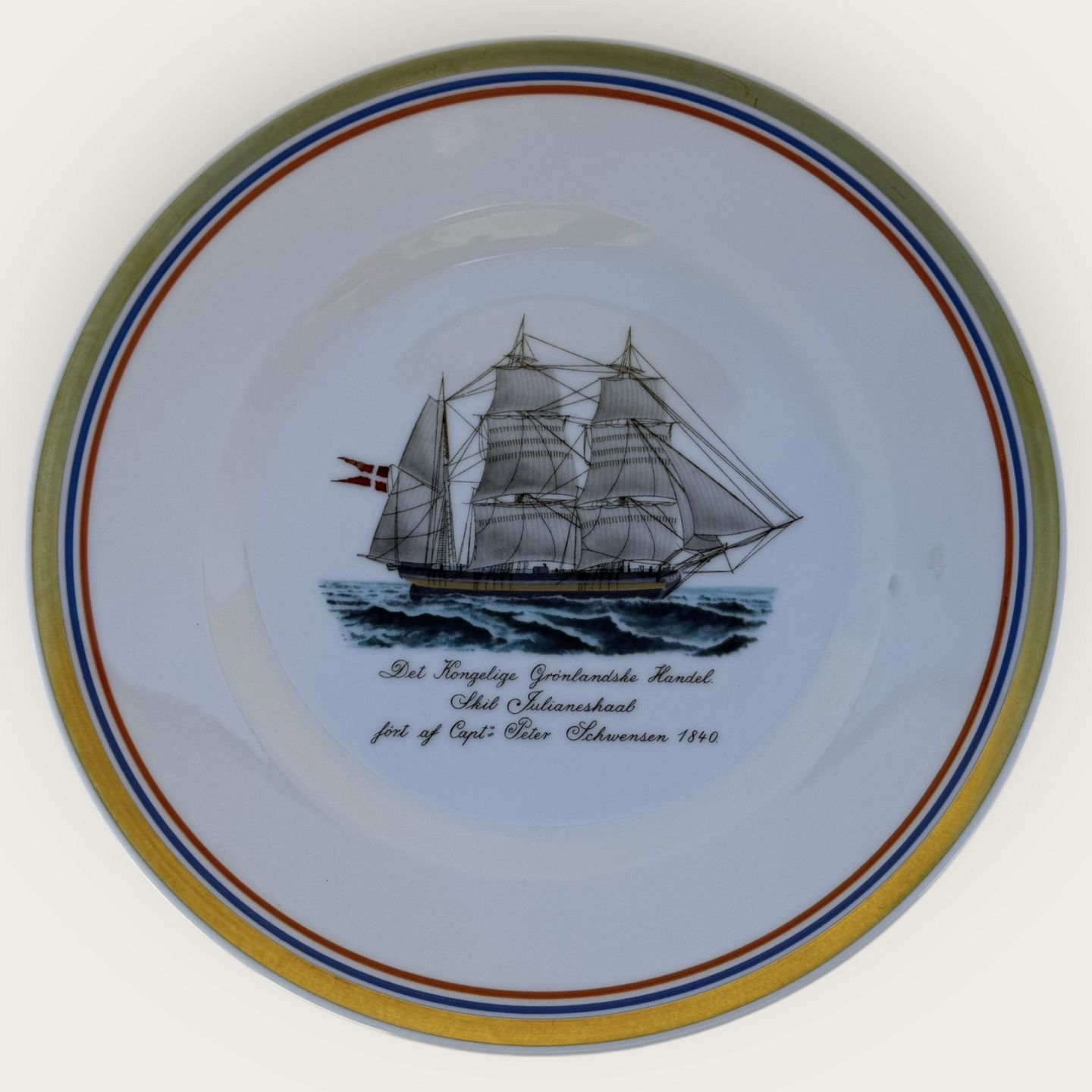 Royal Copenhagen, Motiv 3, Barkskibet Julianehaab, Udført i 375 eksemplarer for A/S Det- Dansk-Franske Dampskibsselskab, 25cm i diameter, perfekt stand