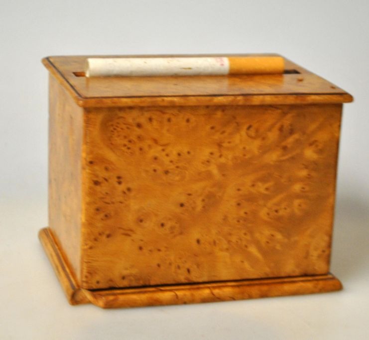 Russisk cigaret skrin i birketræs rod, ca. 1900. L.: 11 cm. H.: 8,5 cm. B.: 9 cm.