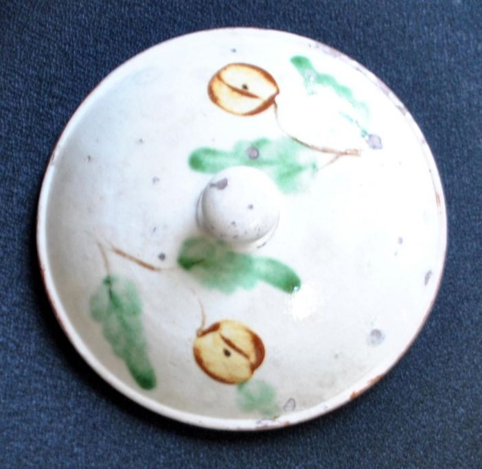 Låg til barselsspand, 19. årh. Danmark. Rødler med dekoration i form af blomster. Dia.: 16 cm.