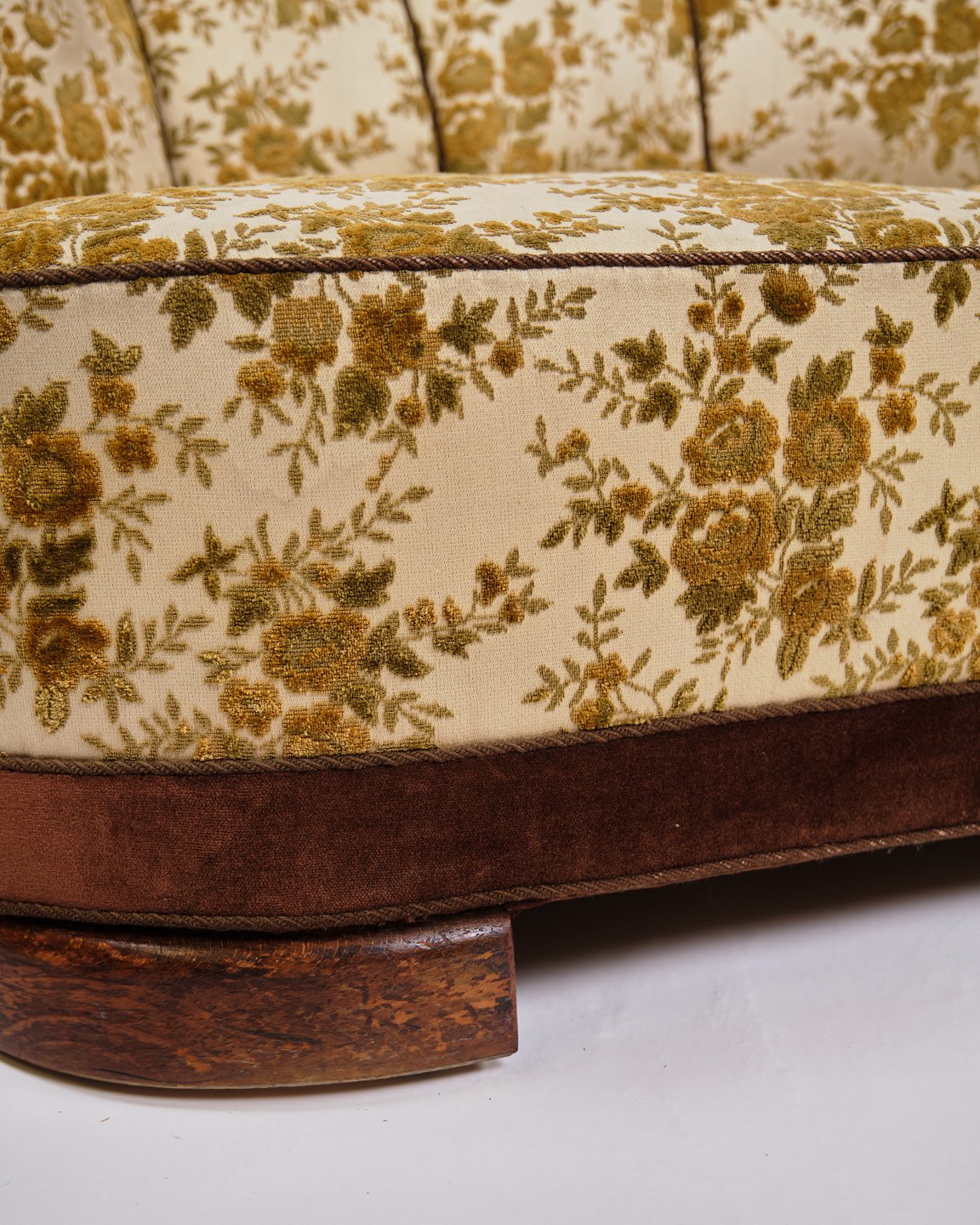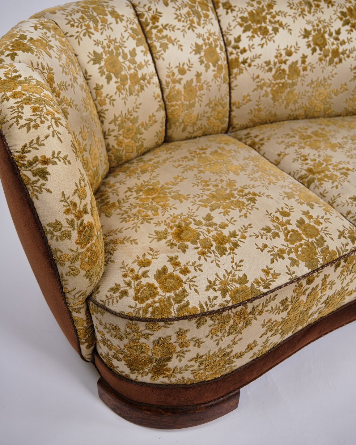 Banan Sofa - Blomstret Betræk - Ben Af Eg - Dansk Snedkermester - 1930-40erne