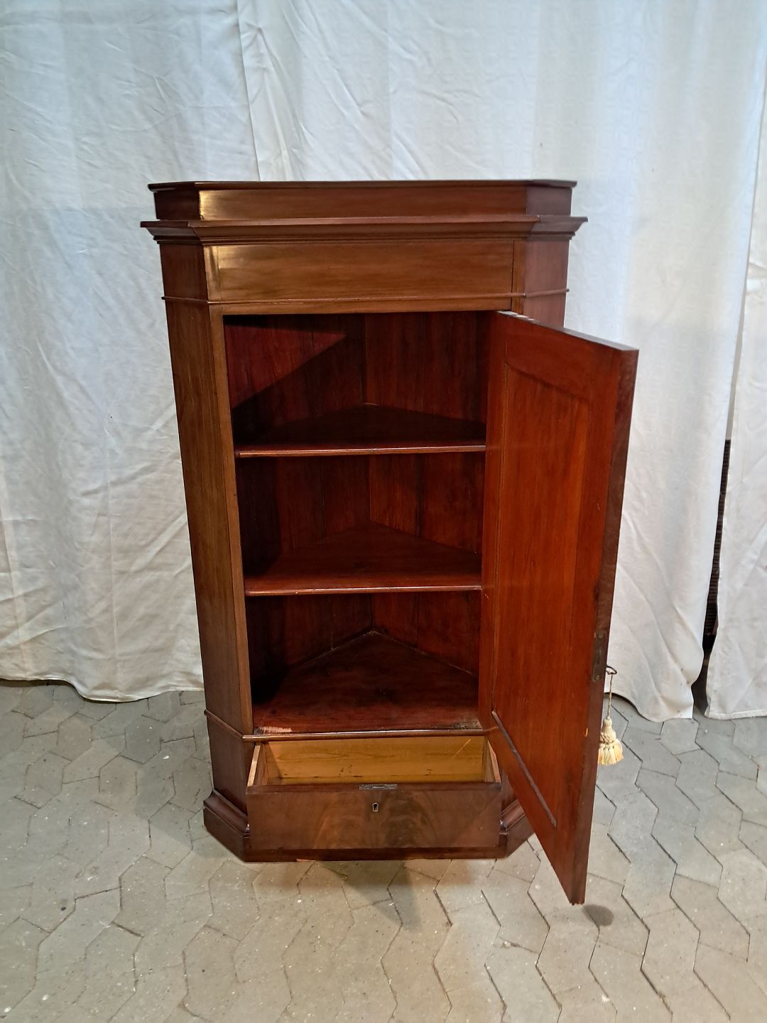 Hjørneskab i fineret mahogni, fra 1900erne.