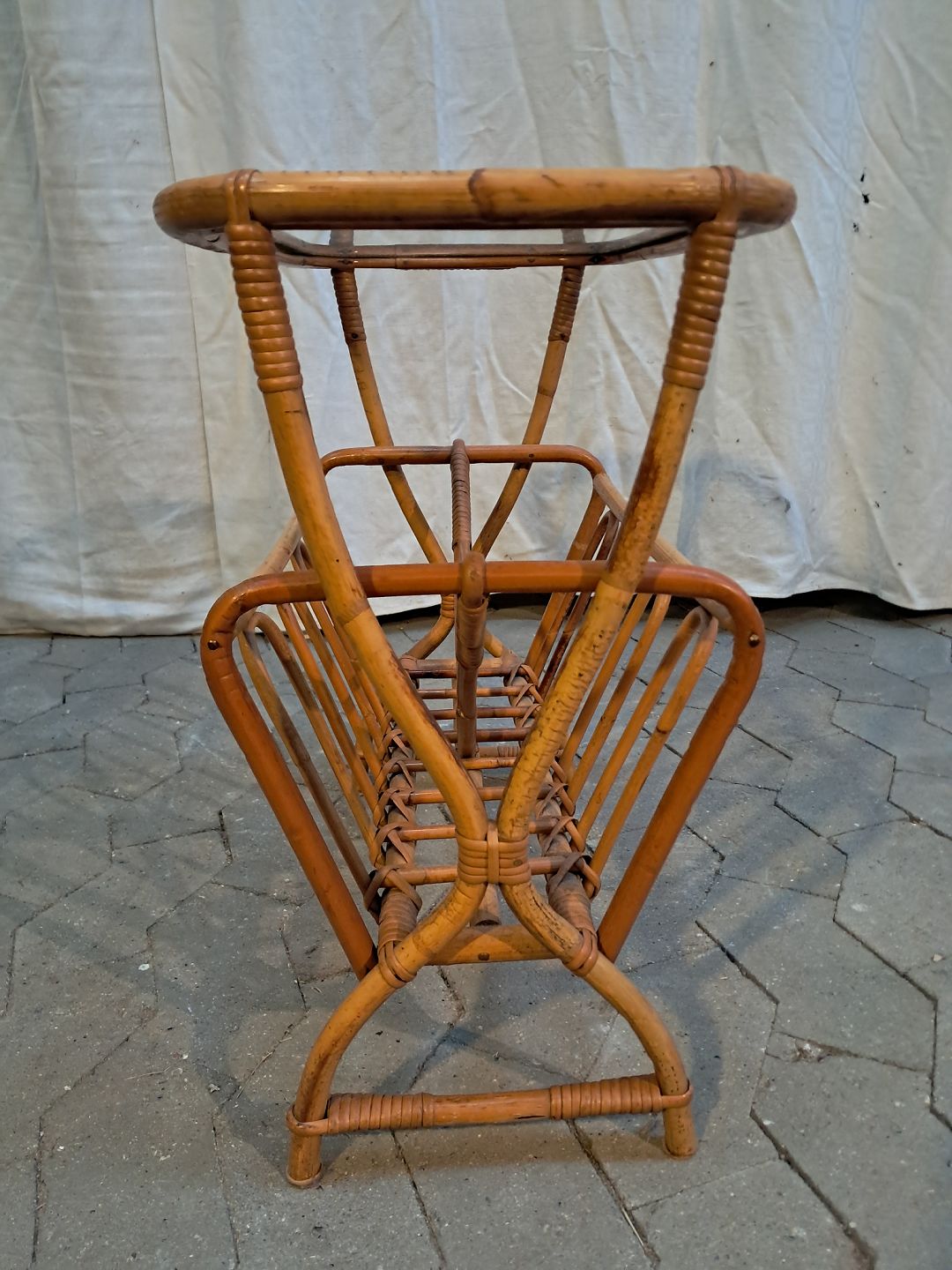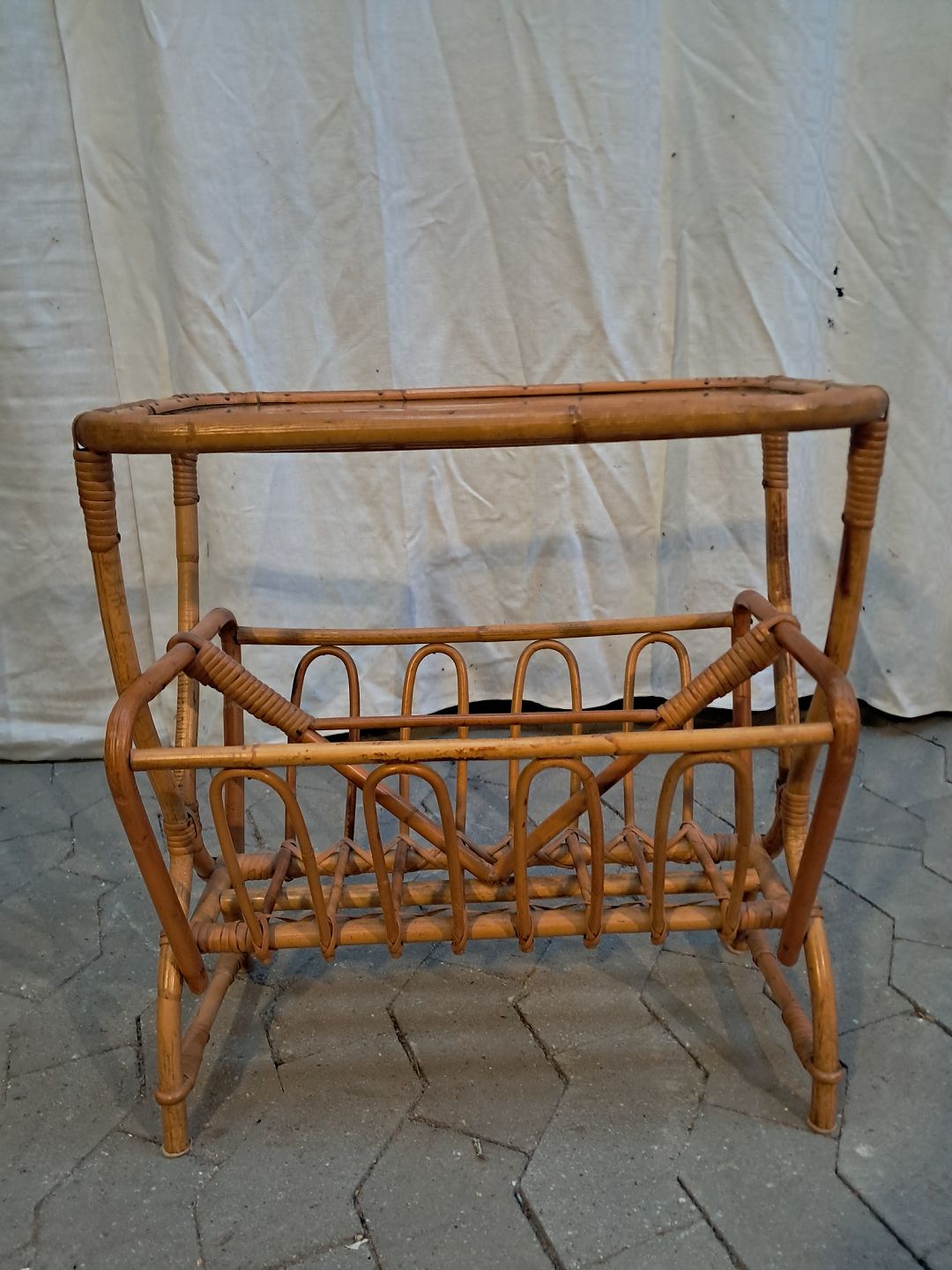 Sidebord i bambus med glasplade, fra 1970erne.