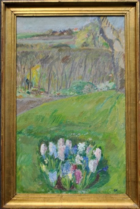 Kielberg, Ole (1911 - 1985) Danmark: Hyacinthbed, 1958-1960. Olie på lærred. Signeret: OK og bagpå: Ole Kielberg Daugløkke 1958-59-60. H: 61 cm. B: 38 cm.