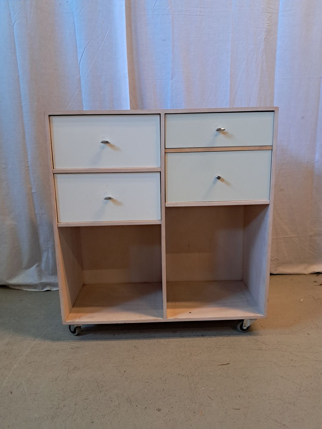 At-bo reolkasse i krydsfiner, fra 2000erne.