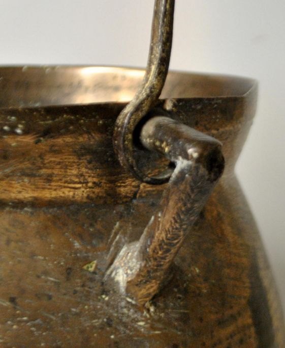 Tre bens gryde i bronze, 17./18. årh. Nordtyskland. Med hank og tre ben. Ustemplet. H.: 20 cm. Højde med hank: 30 cm. Dia.: 20,5 cm.