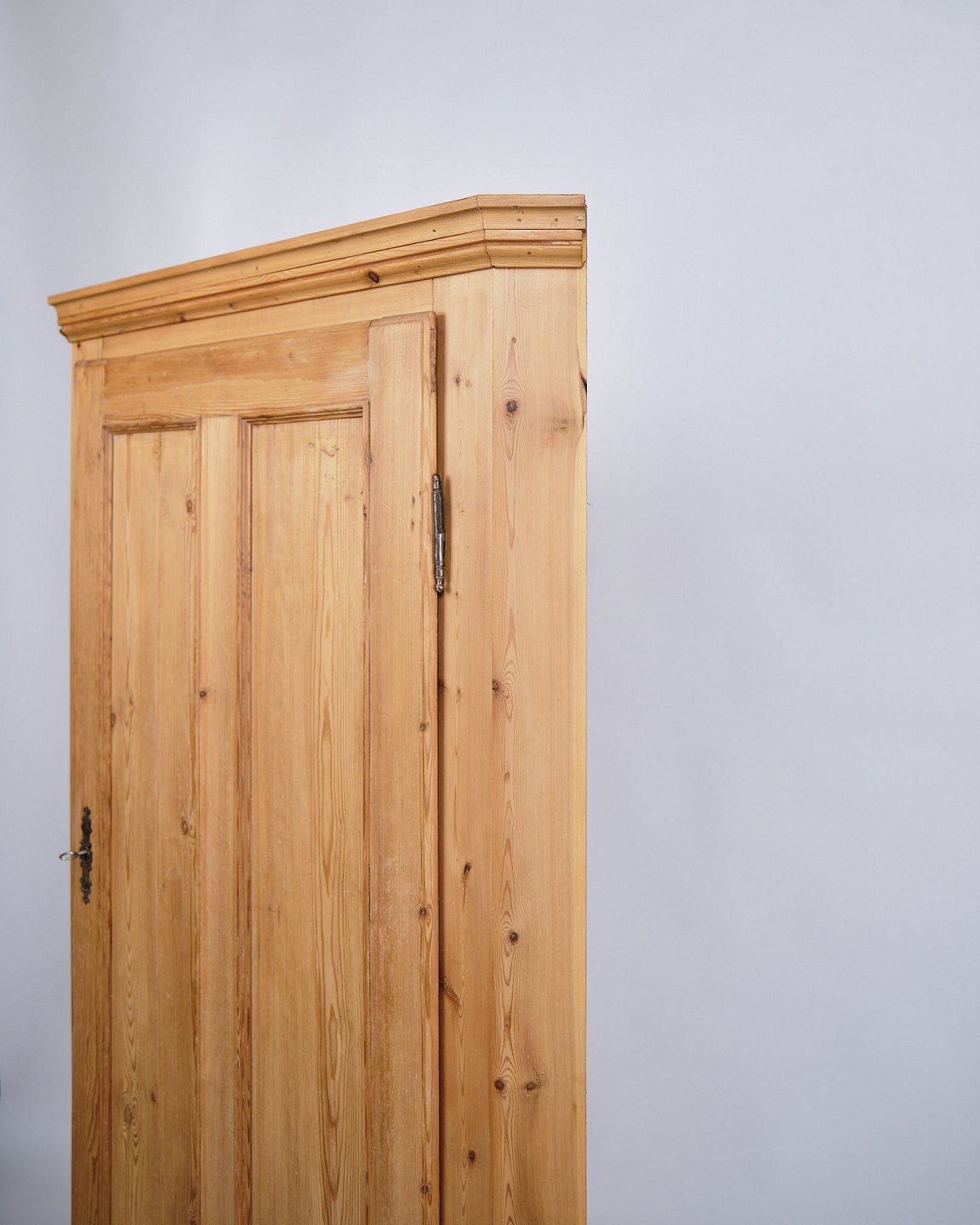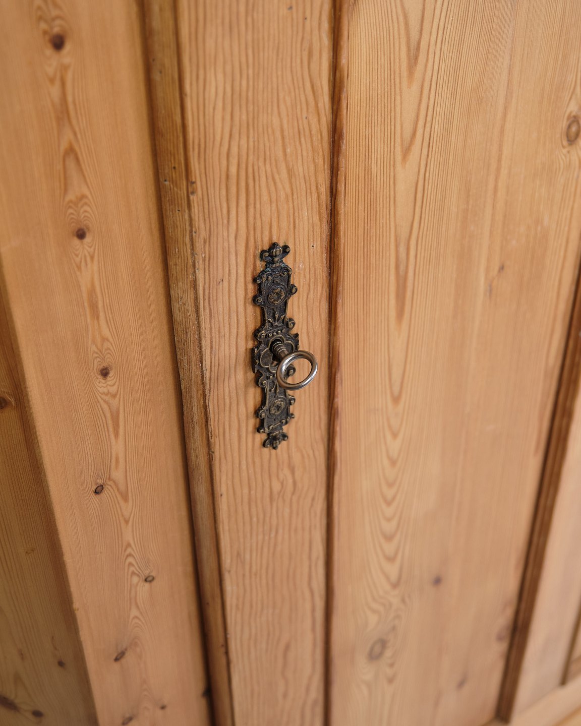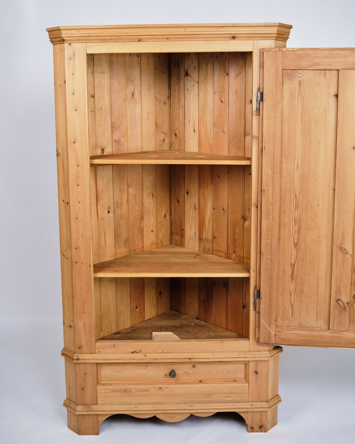 Antikt hjørne fra 1920’erne udført i massivt fyrtræ med originale messingbeslag.