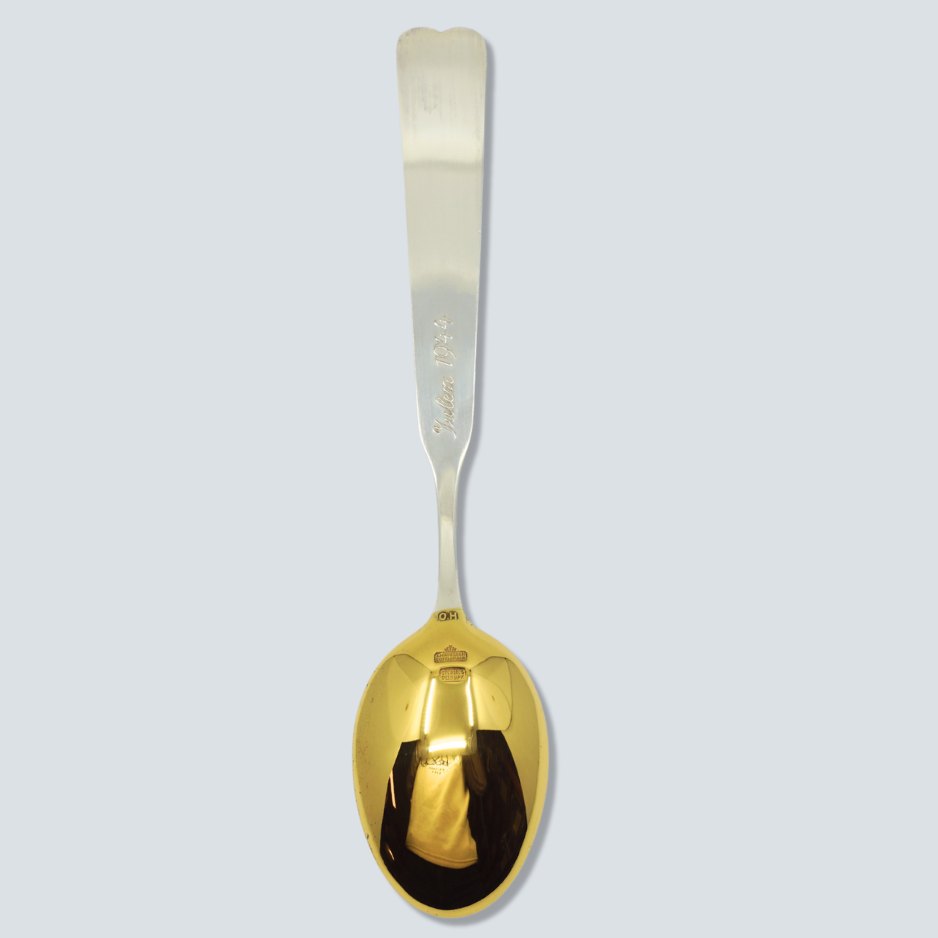 Ole Hagen for A. Michelsen; Juleske 1944. Juleske af forgyldt sterling sølv med emalje. Design Ole Hagen.