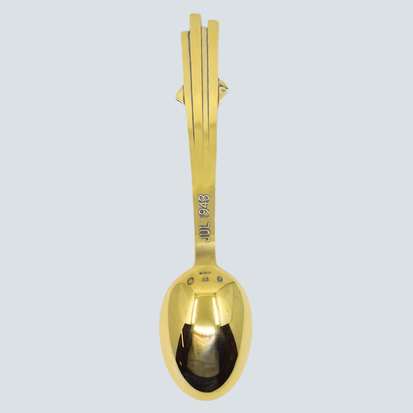 Olaf Stæhr-Nielsen for A. Michelsen; Juleske 1943. Juleske af forgyldt sterling sølv med emalje. Design Olaf Stæhr-Nielsen.
