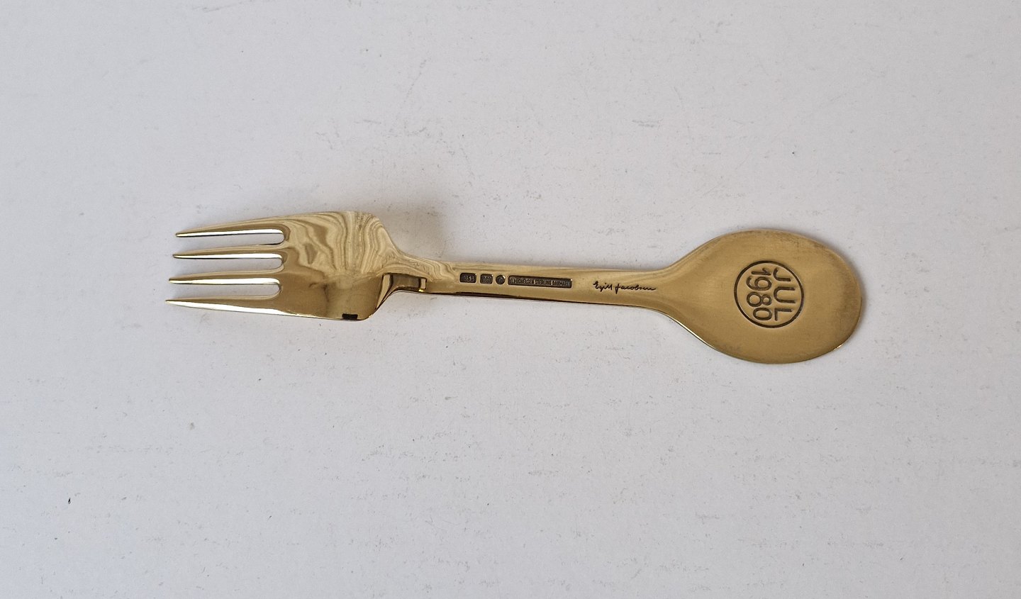 A.Michelsen julegaffel i forgyldt sterlingsølv med emalje 1980