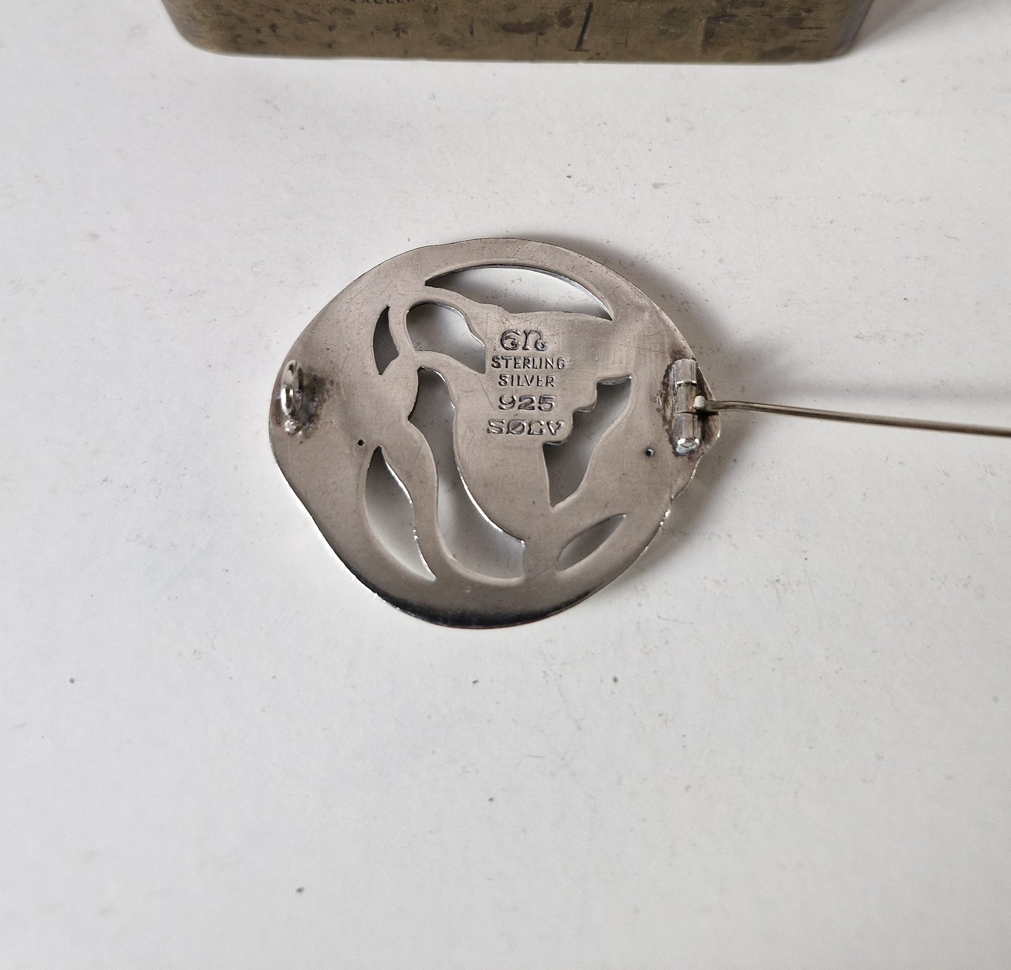 Evald Nielsen skønvirke broche i sølv dekoreret med vintergækker
