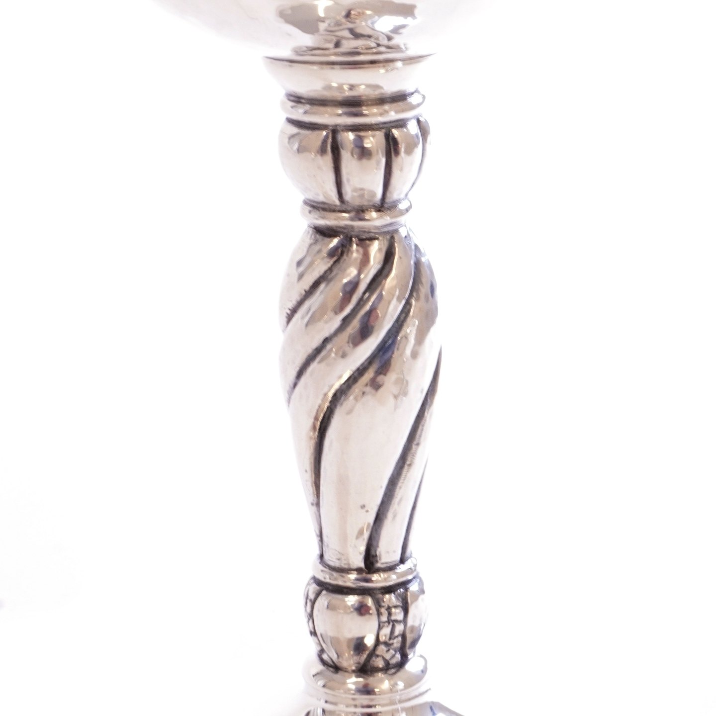 Sæt på to vinbægre og to cognacbægre udført af Holmsted i kraftigt sterlingsølv. H: 18 & 9cm. V: 1.068gr |