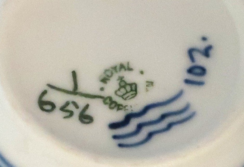 Royal Copenhagen. Musselmalet, halvblonde. Tekop. Model 656 (1 sortering). Produceret før 1923.