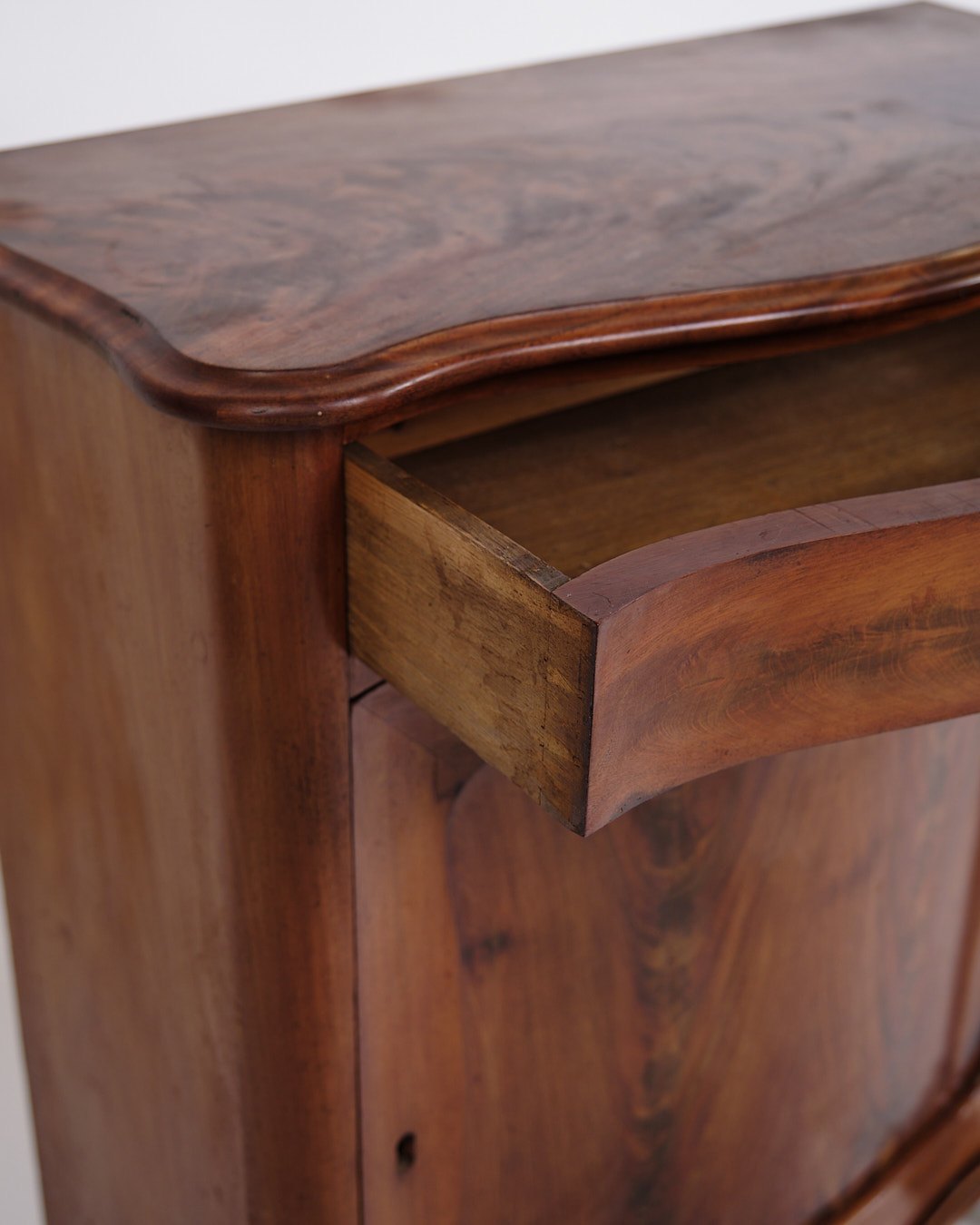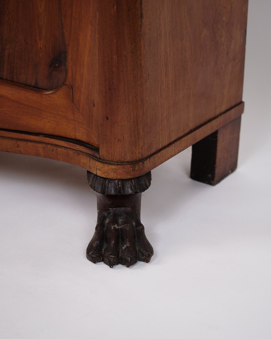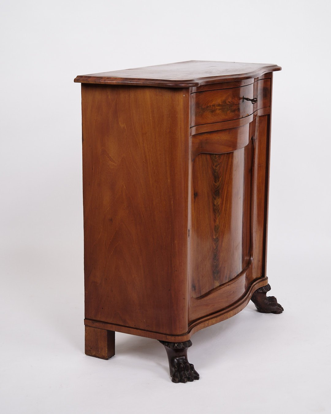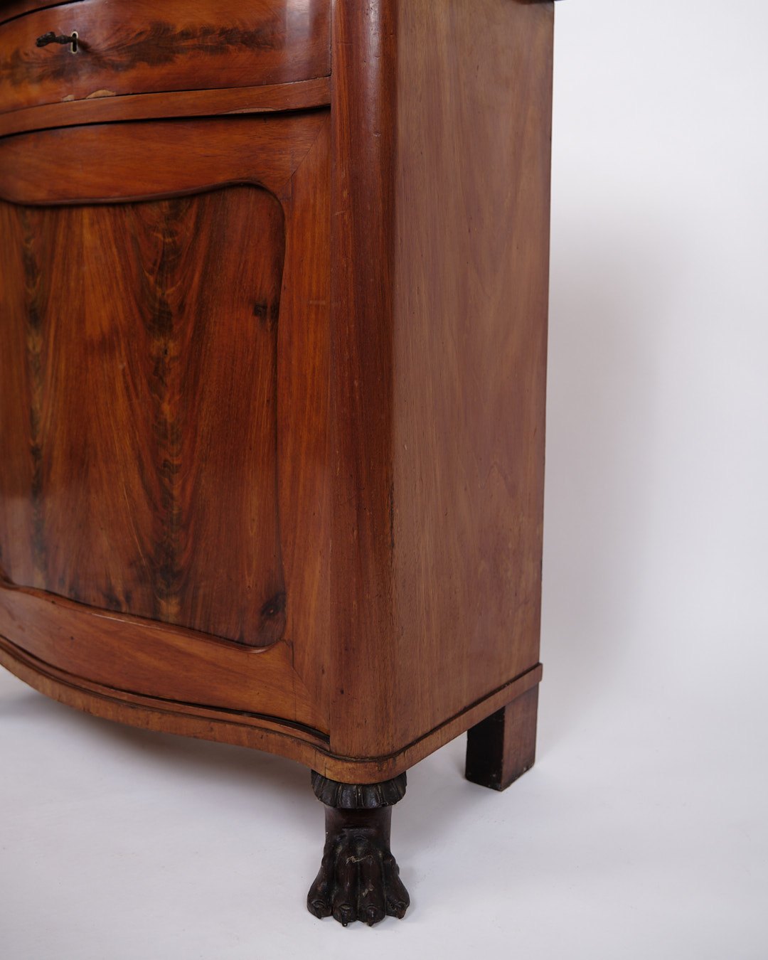 Lille konsol-/entrémøbel fra 1890’erne, udført i håndpoleret mahogni med flamme struktur. Skabet står på detaljerede løvefødder, der giver et elegant og klassisk udtryk.