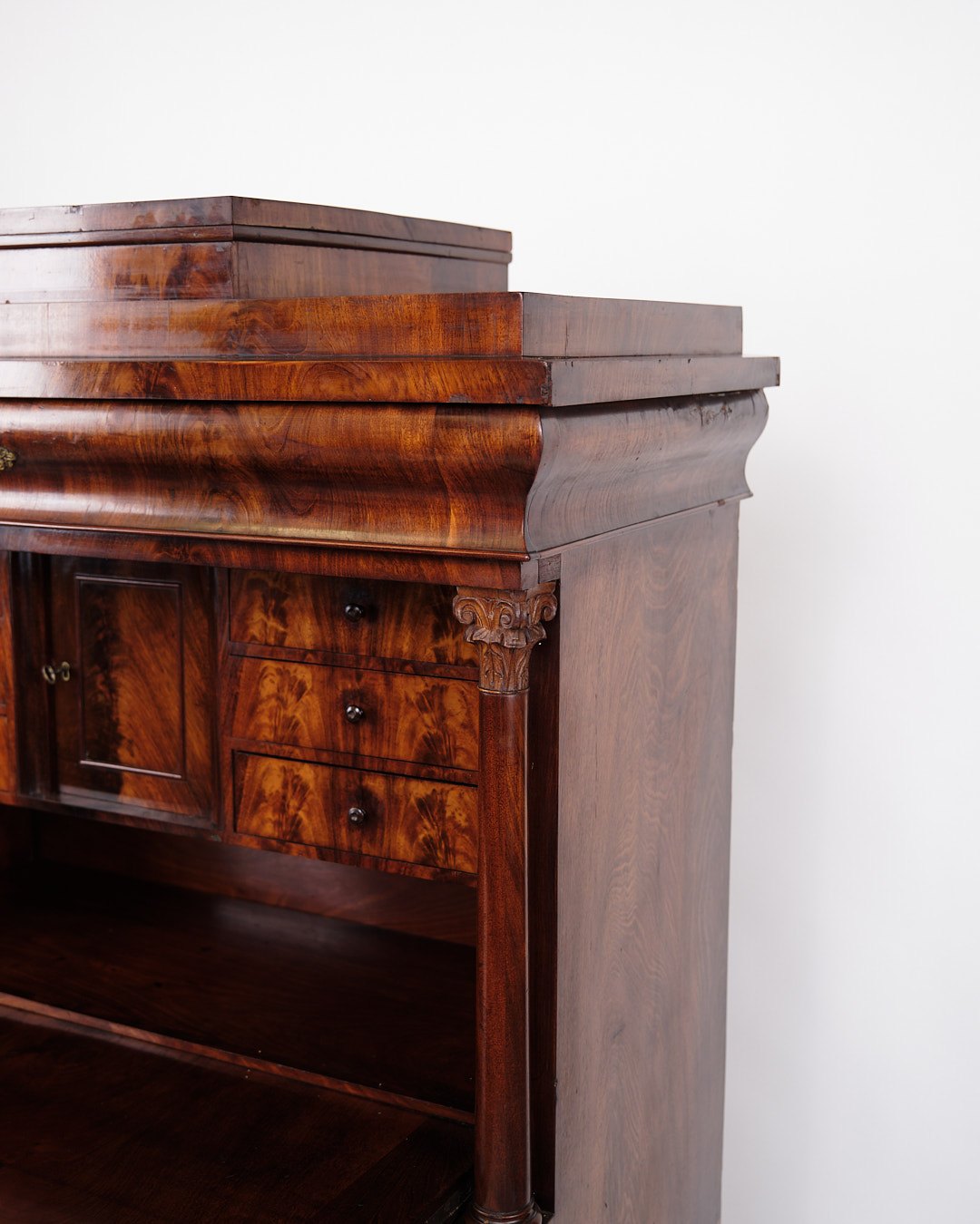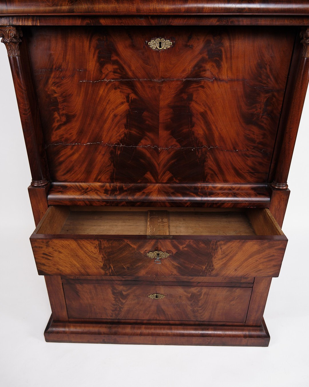 Sekretær - Håndpoleret Mahogni - Flamme Struktur - 4 Skuffer - År 1840erne