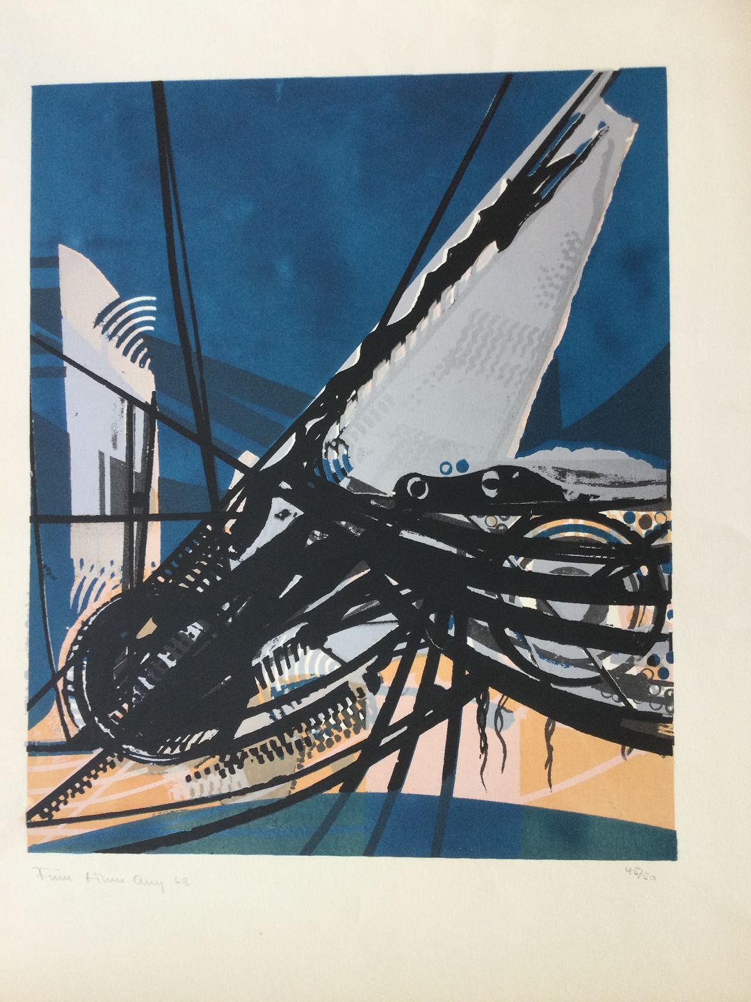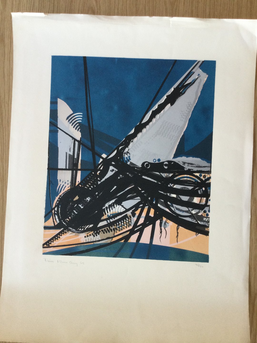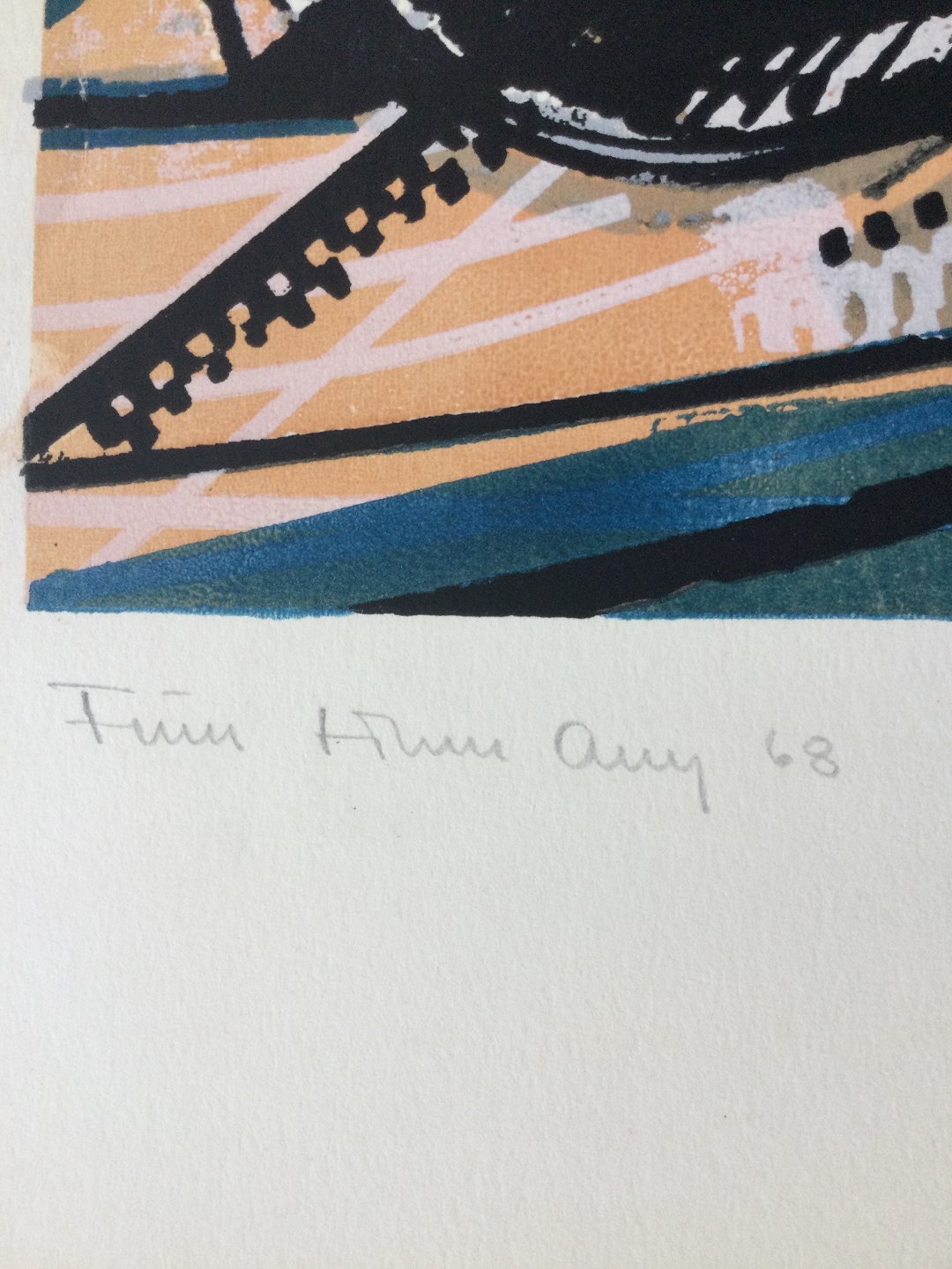 Farvelitografi af Finn Lohmann - Komposition 1968.
