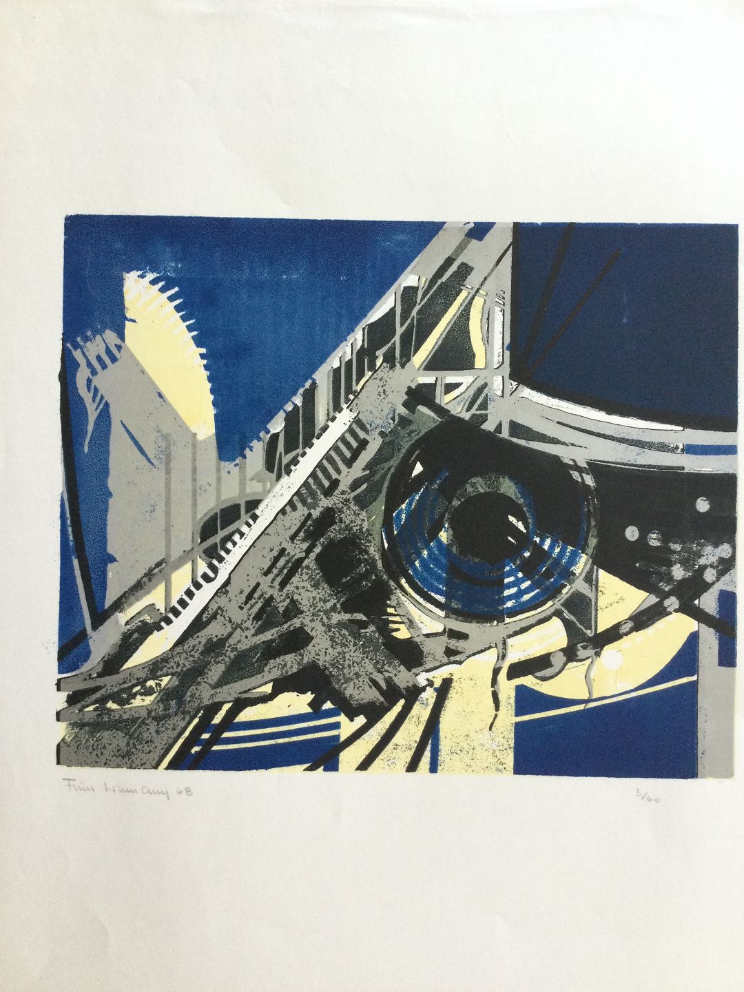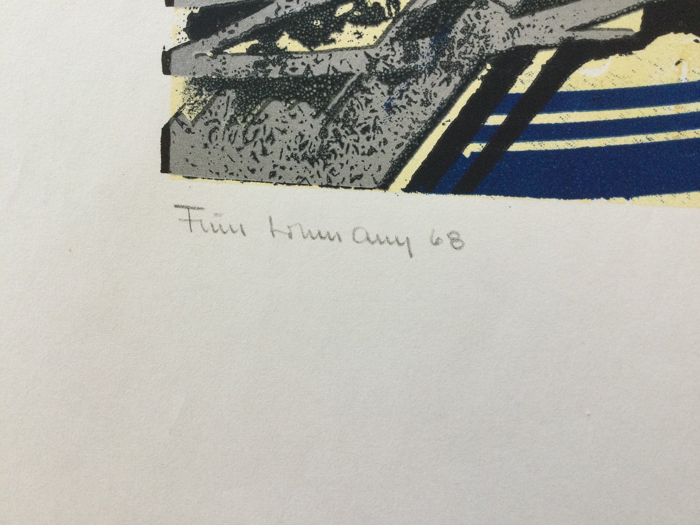 Farvelitografi af Finn Lohmann - Komposition 1968.