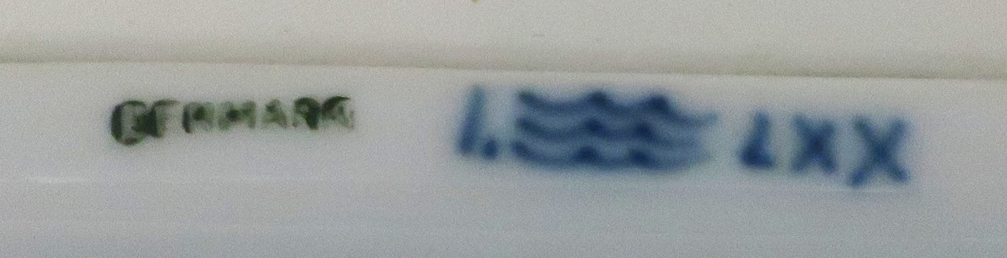 Royal Copenhagen. Musselmalet, riflet. Blæksuger (2034). Længde 14 cm. (1 sortering).