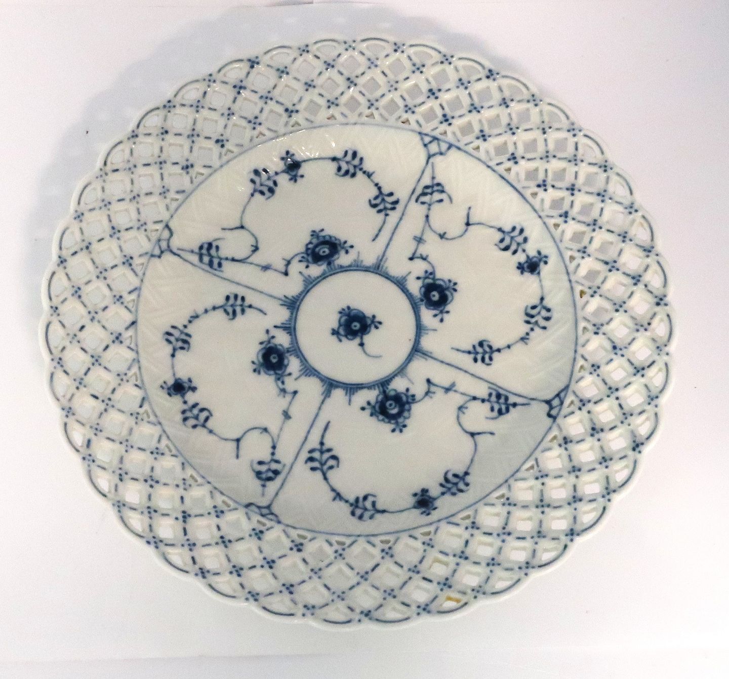 Royal Copenhagen. Musselmalet, Helblonde. Flad tallerken med gennemskåret bort. Model 1098. Diameter 25,5 cm. (4 sortering).