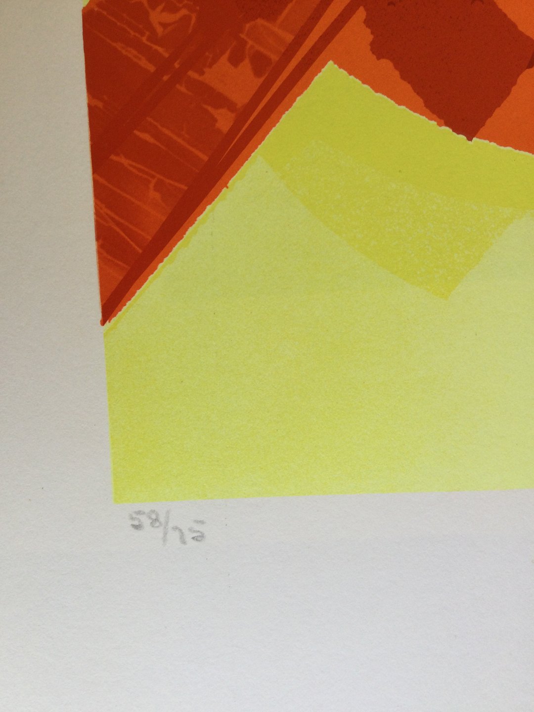 Farvelitografi af Finn Lohmann - Komposition 1976.