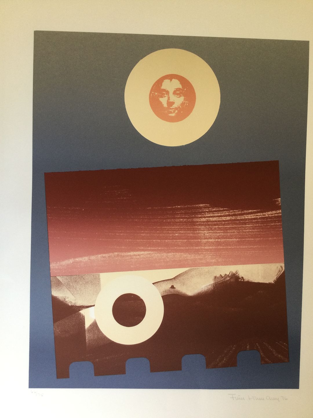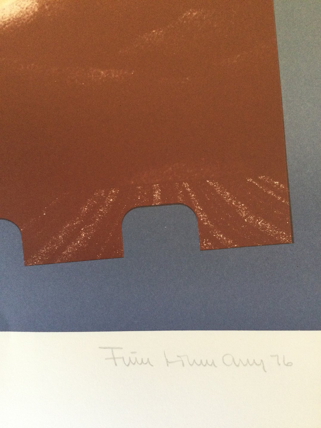 Farvelitografi af Finn Lohmann - Komposition 1976.