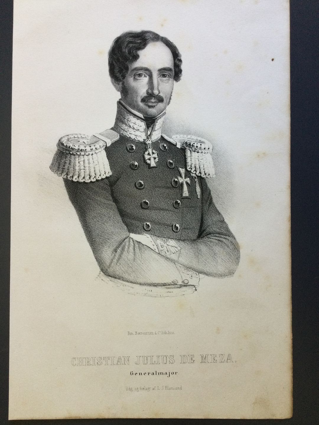 Litografi af Em. Bærentzen - Portræt af Generalmajor Christian Julius de Meza.