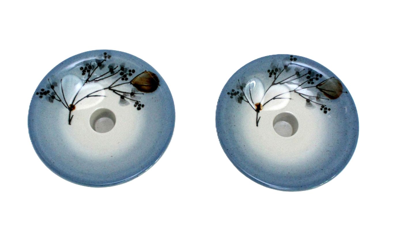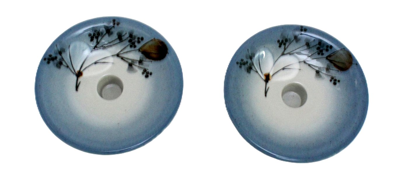 Royal Copenhagen Celeste lyseblå porcelæn med blomstermotiv. Designet af Ellen Malmer. Lysestage. Nr. 967/3901. Diameter 12,5 cm. Højde 5 cm. I. sortering. Pris: 250 kr. stk. Lager: 2