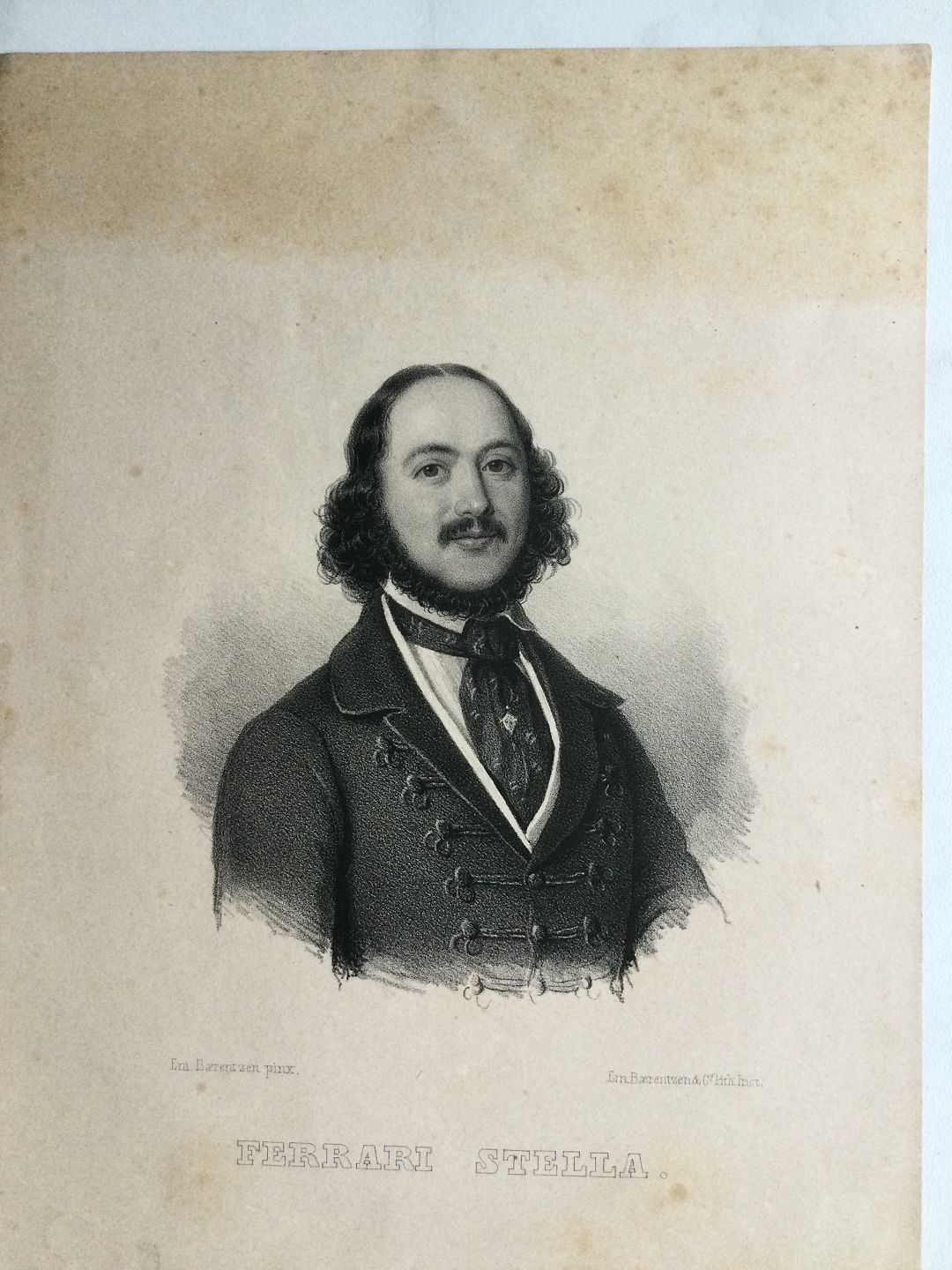 Litografi af Em. Bærentzen - Portræt af Operasanger Ferrari Stella 1843.