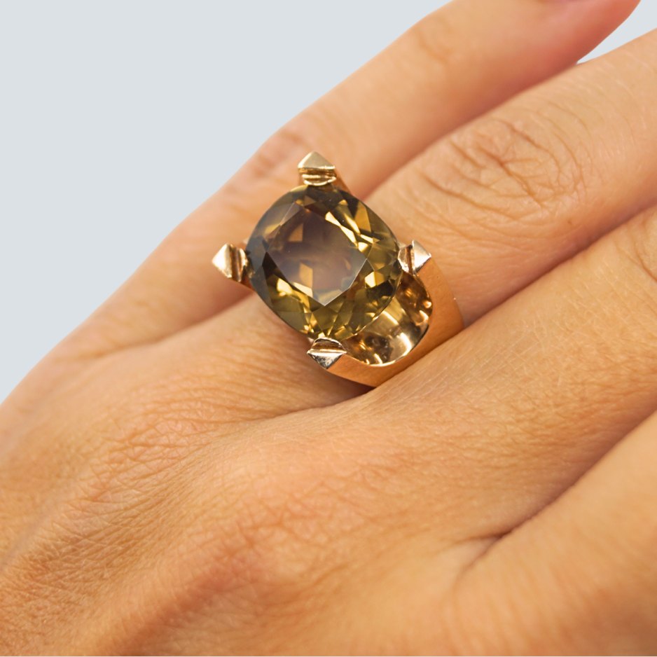 Just Andersen; Ring i 14 kt. guld, prydet med en stor topas.