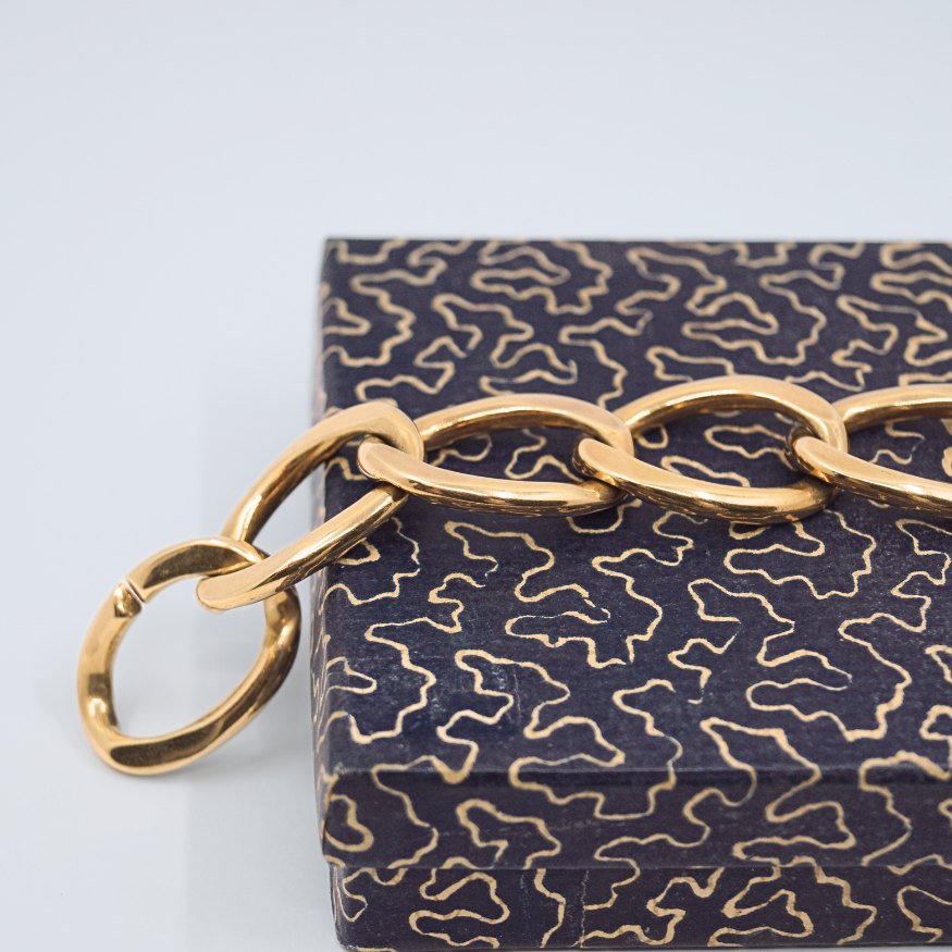 Flemming Kjerultt; Armbånd i 14 kt. guld. I kraftig håndsmedet kvalitet. Sammensat af led og kan åbnes.