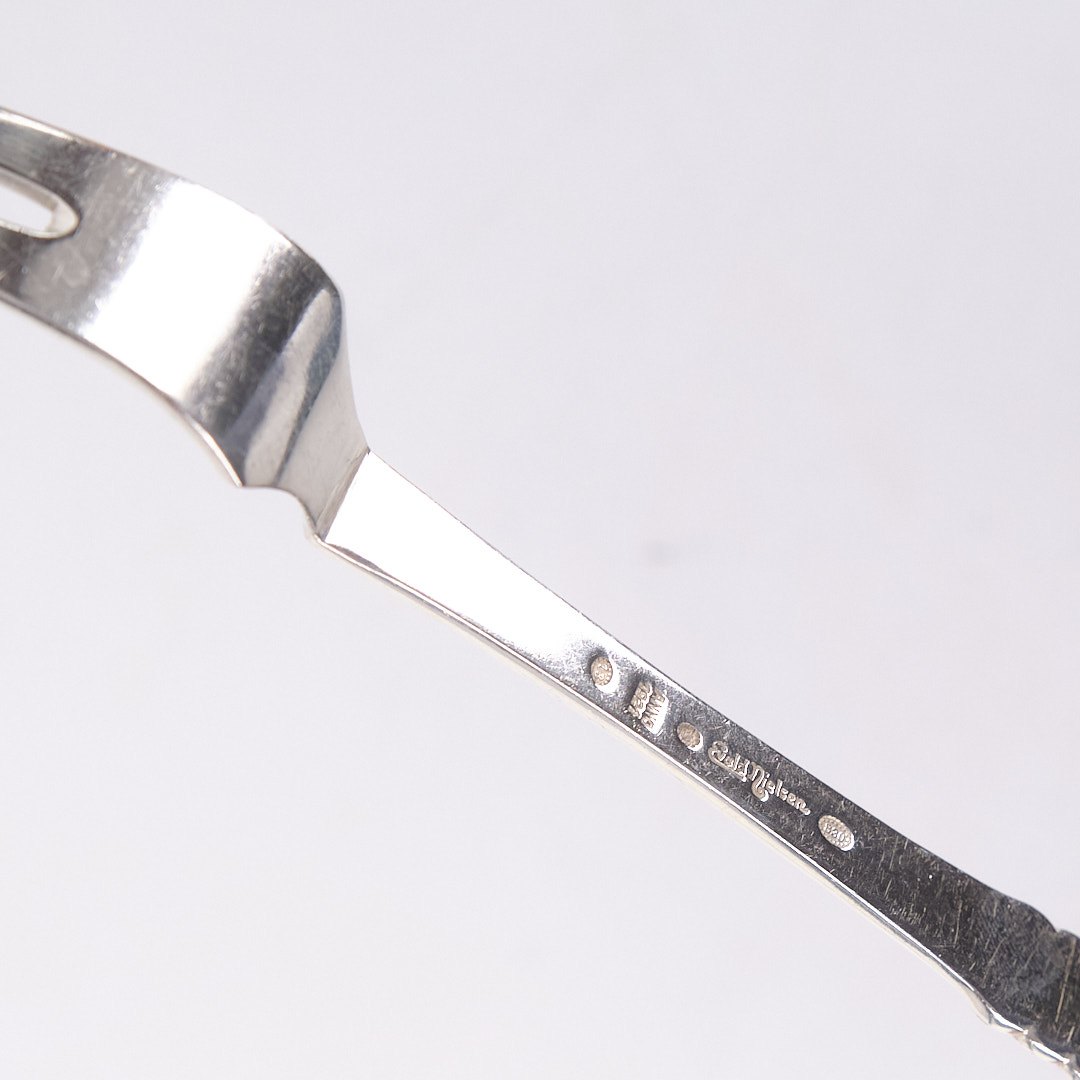Stegegaffel i mønster nr. 13 af Evald Nielsen. Tretårnet sølv, stemplet. Klassisk dansk sølvdesign i tidløs kvalitet.