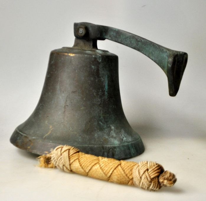 En gammel gårdklokke, malm, 20. årh. Danmark.