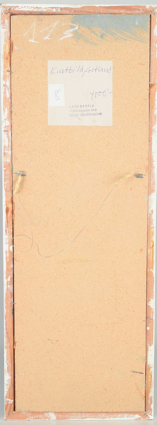 Lars Bertle (f. 1925 i Helsingborg, Sverige) er en autodidakt svensk kunstner, der først begyndte at male på fuld tid i slutningen af 1960’erne. Hans værker spænder fra landskaber og stilleben til abstrakte kompositioner, ofte inspireret af naturen og havet. Bertle er kendt for sin ekspressionistiske stil og brug af paletkniv, som giver malerierne et dynamisk og taktilt udtryk. Han har haft flere separatudstillinger i Sverige, bl.a. på Vikingsbergs Konstmuseum i Helsingborg, Galleri HERA i Stockholm og Galleri Viktoria i Göteborg. Hans værker er repræsenteret i flere offentlige samlinger, herunder Helsingborgs Museum, Statens Konstråd og Landskrona Museum. Bertle har modtaget flere stipendier og priser, herunder Helsingborgs Kulturstipendium i 1967 og Statens Kunststipendier i 1978 og 1992.
