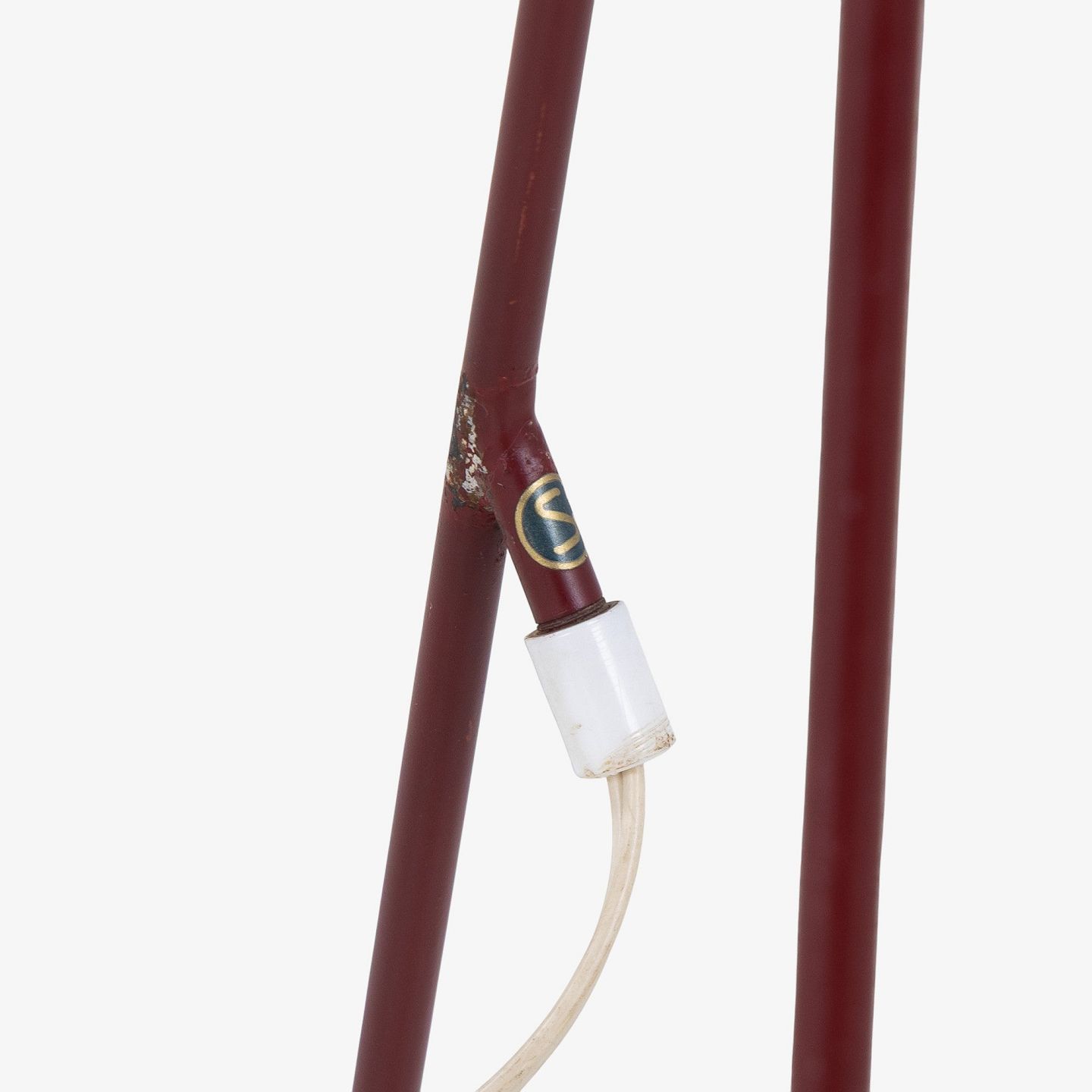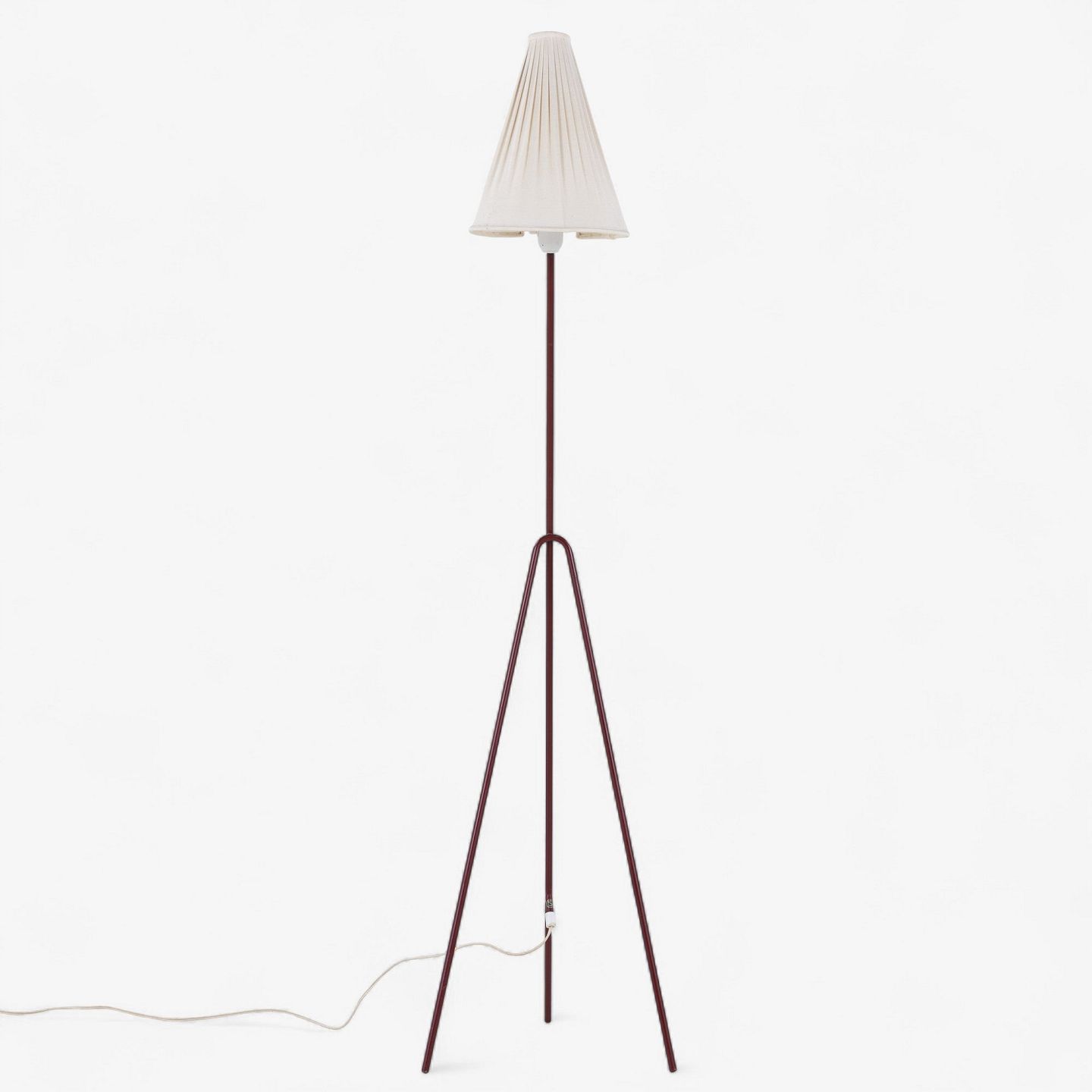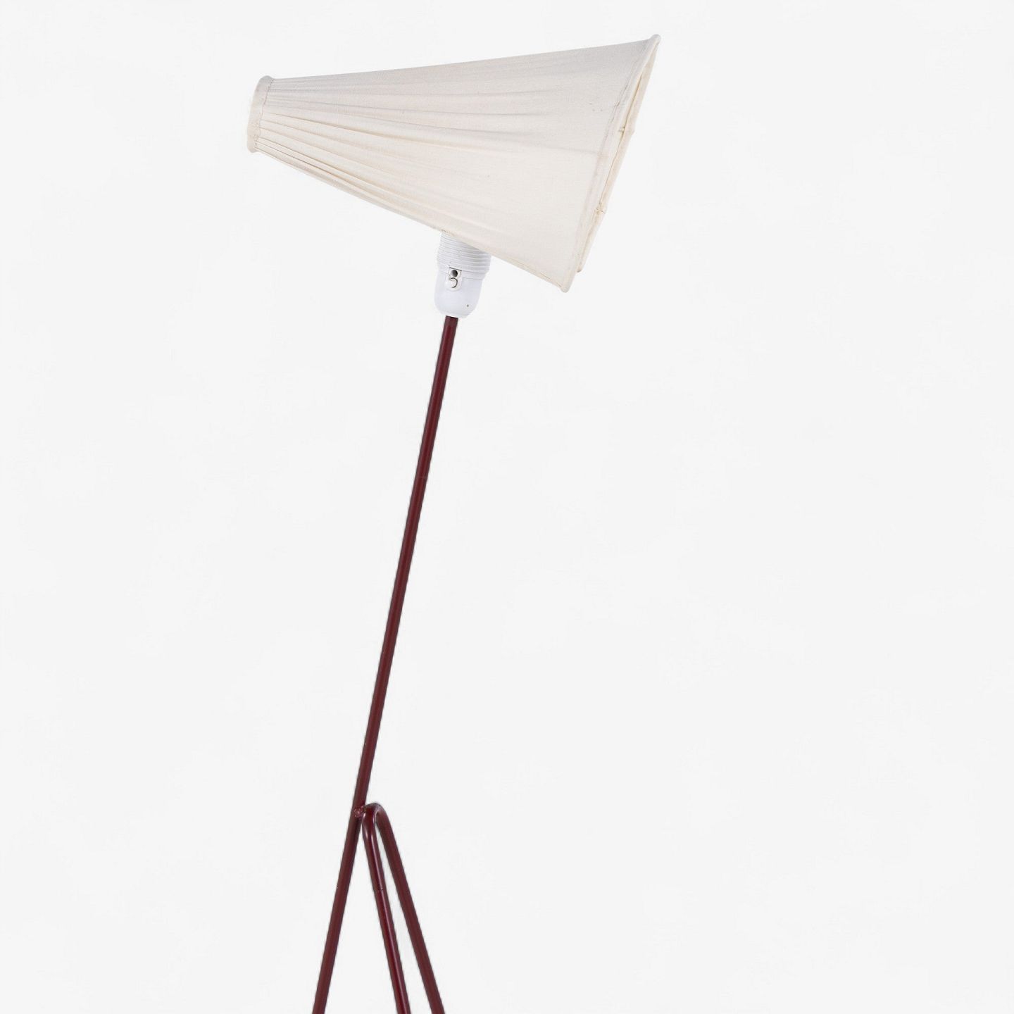 Model 569 - 'Giraffen'-gulvlampe med stel i patineret rødlakeret metal og hvid stofskærm.