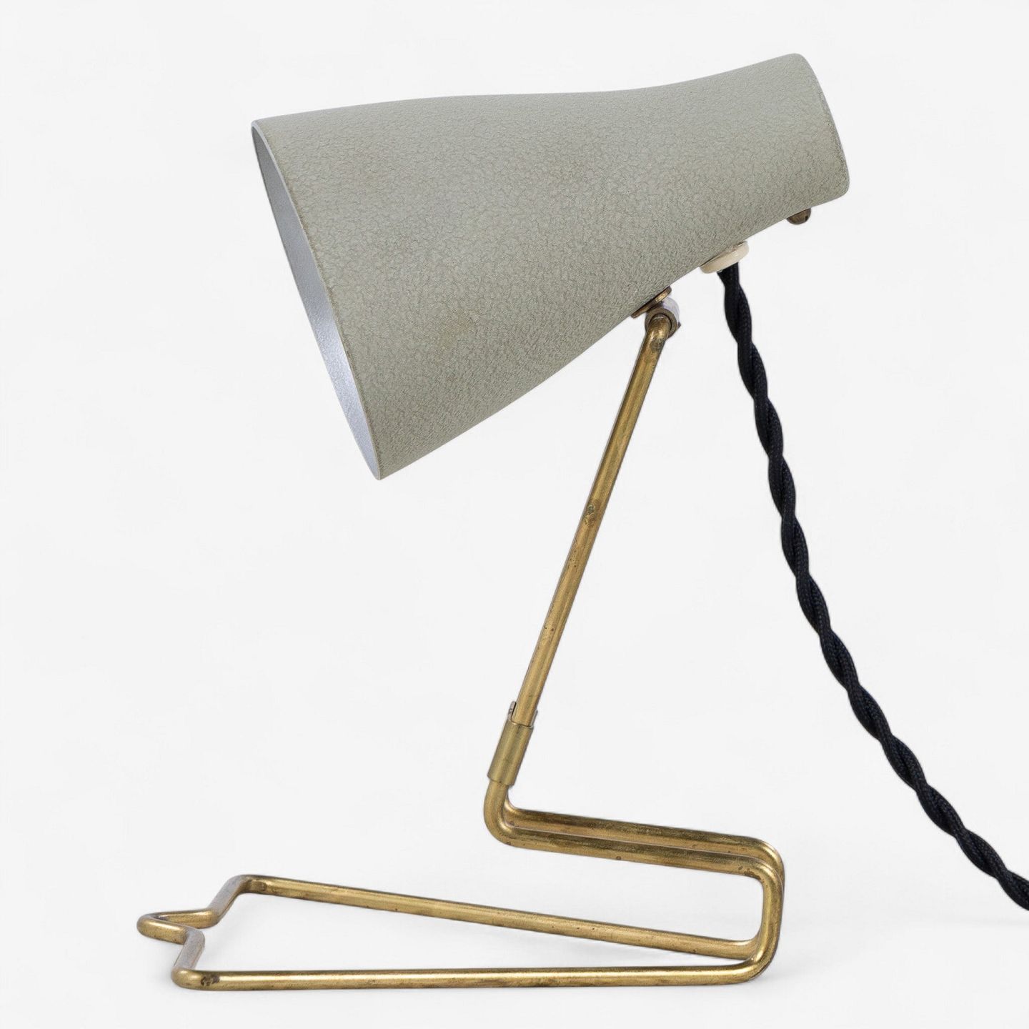 Bordlampe i metal med matlakeret skærm.