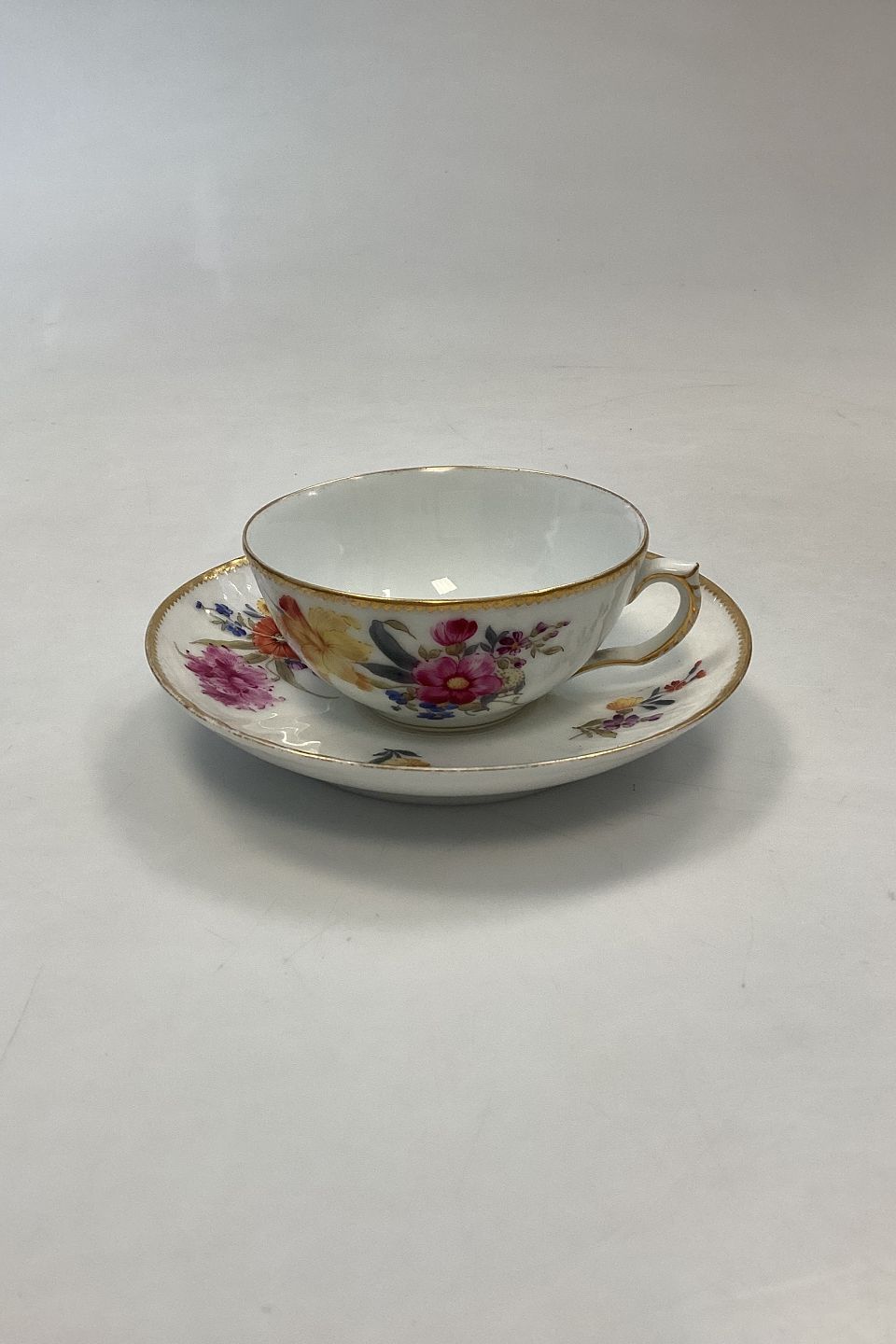 Royal Copenhagen Fuld Saksisk Blomst Lille Tekop. I fin stand, men noget slid på guldkanten.