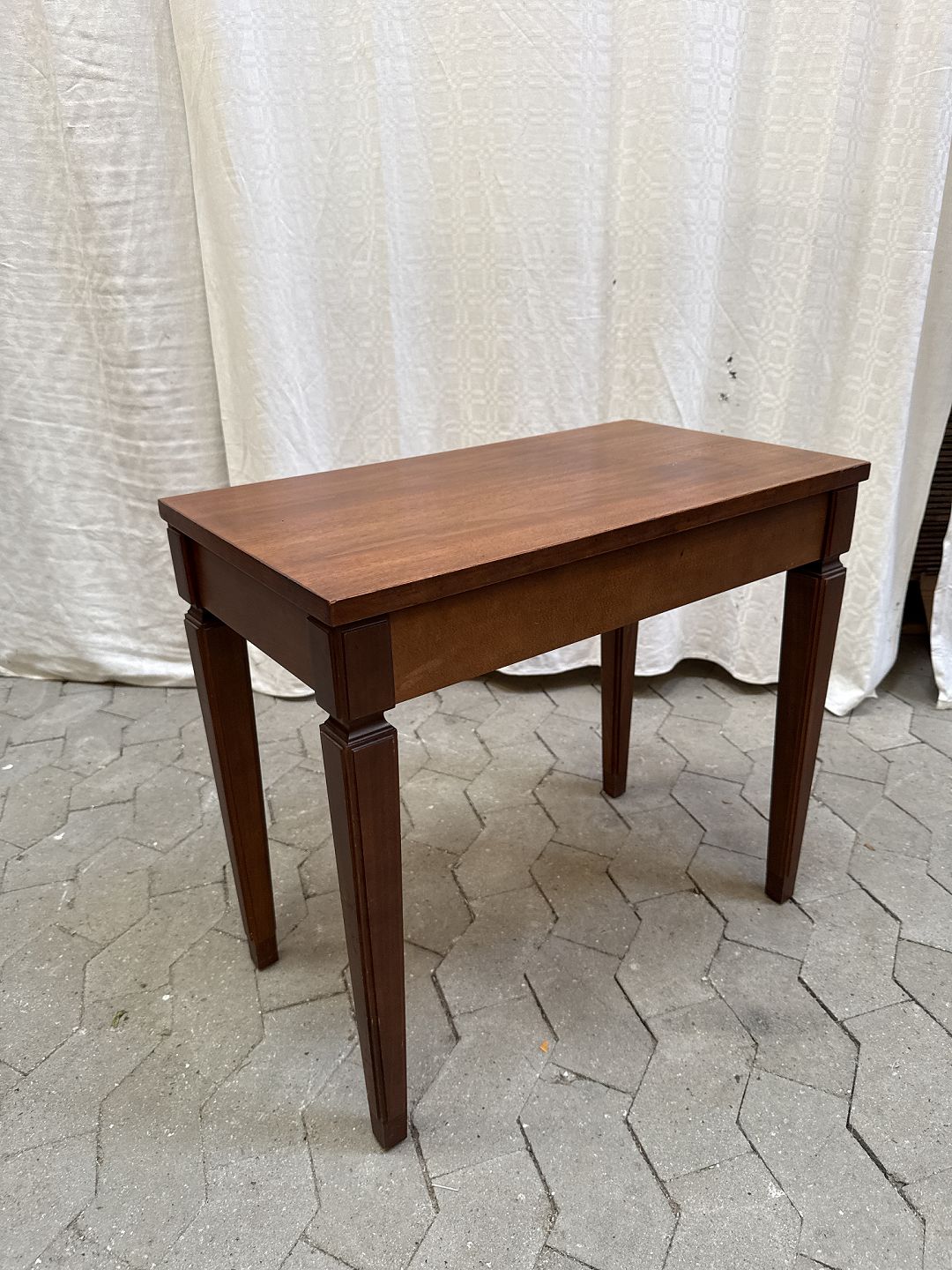 Lille bord med kiste funktion i fineret mahogni fra 1980’erne