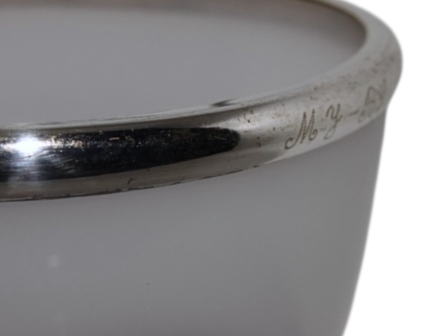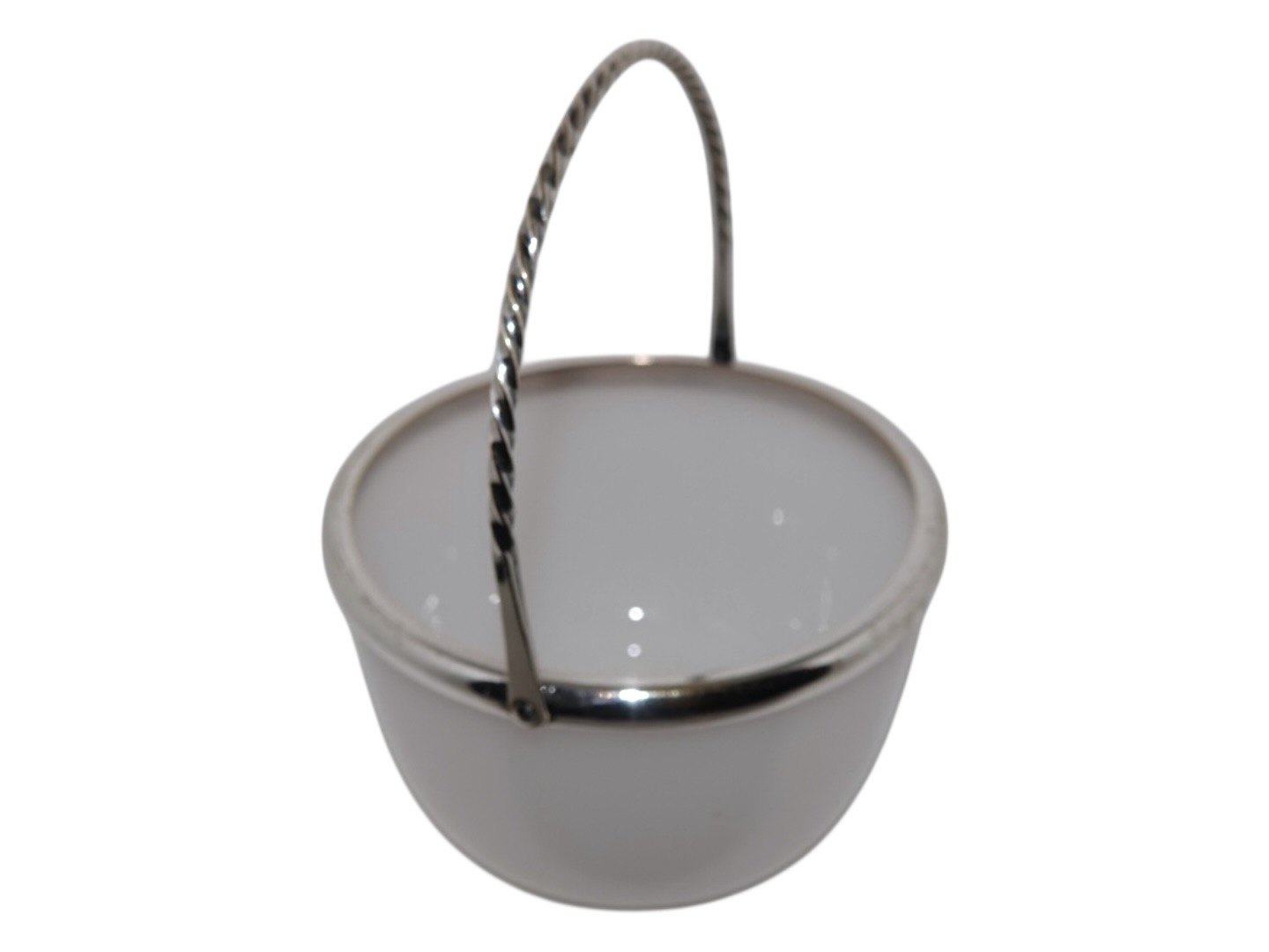 Kandisskål i hvidt opalineglas med sølvplet hank