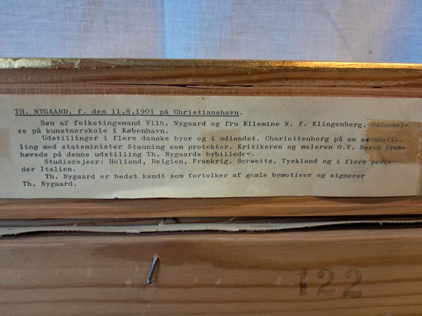 Maleri af Nyhavn i guldmalet ramme, af : Th. Nygaard