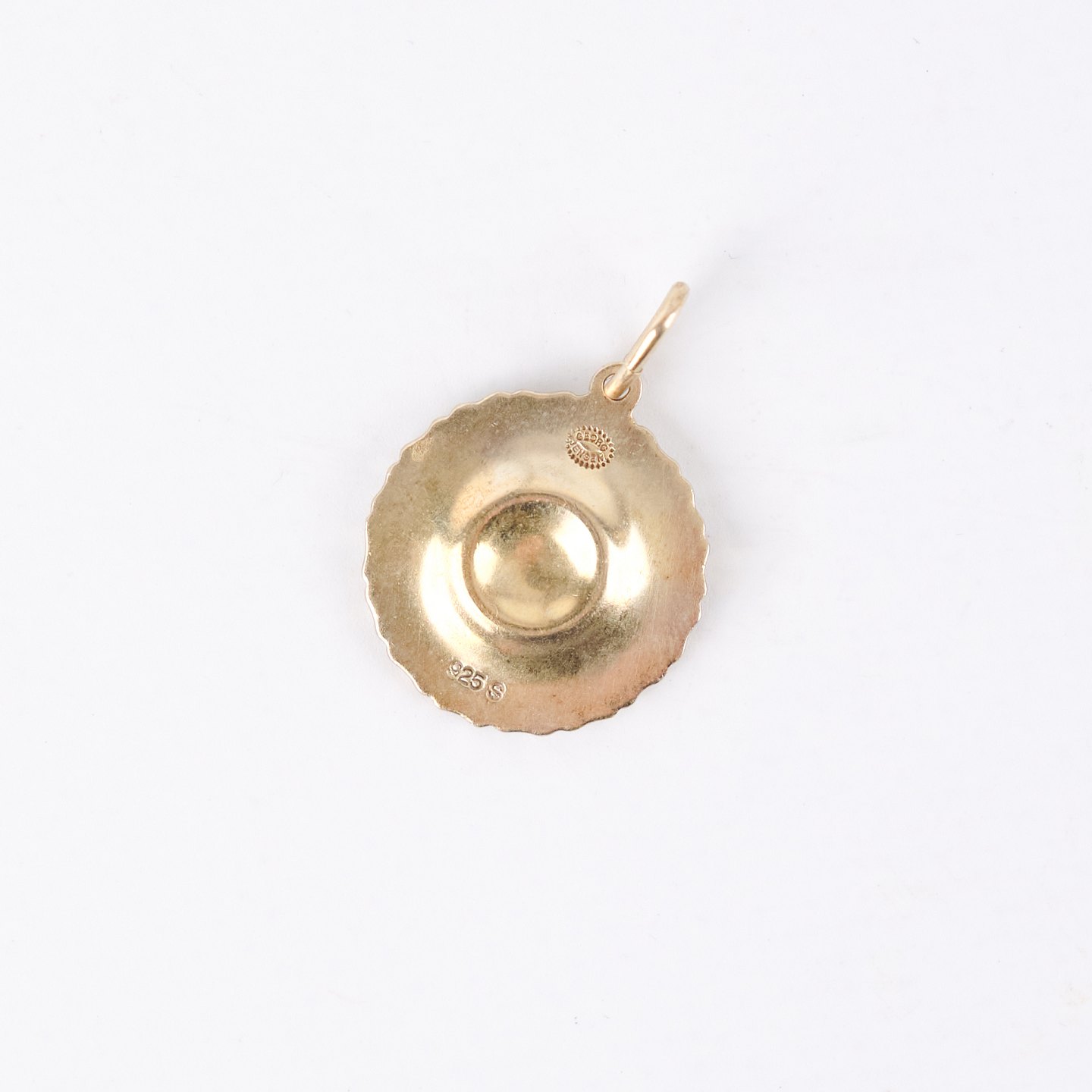 Broche fra 1940’erne udført af Anton Michelsen, stemplet AM Sterling Danmark. Forgyldt og med intakt emalje, udført i klassisk dansk smykkekunst med karakteristisk marguerit- eller blomsterinspireret formsprog. Et tidstypisk og dekorativt smykke fra en anerkendt producent.