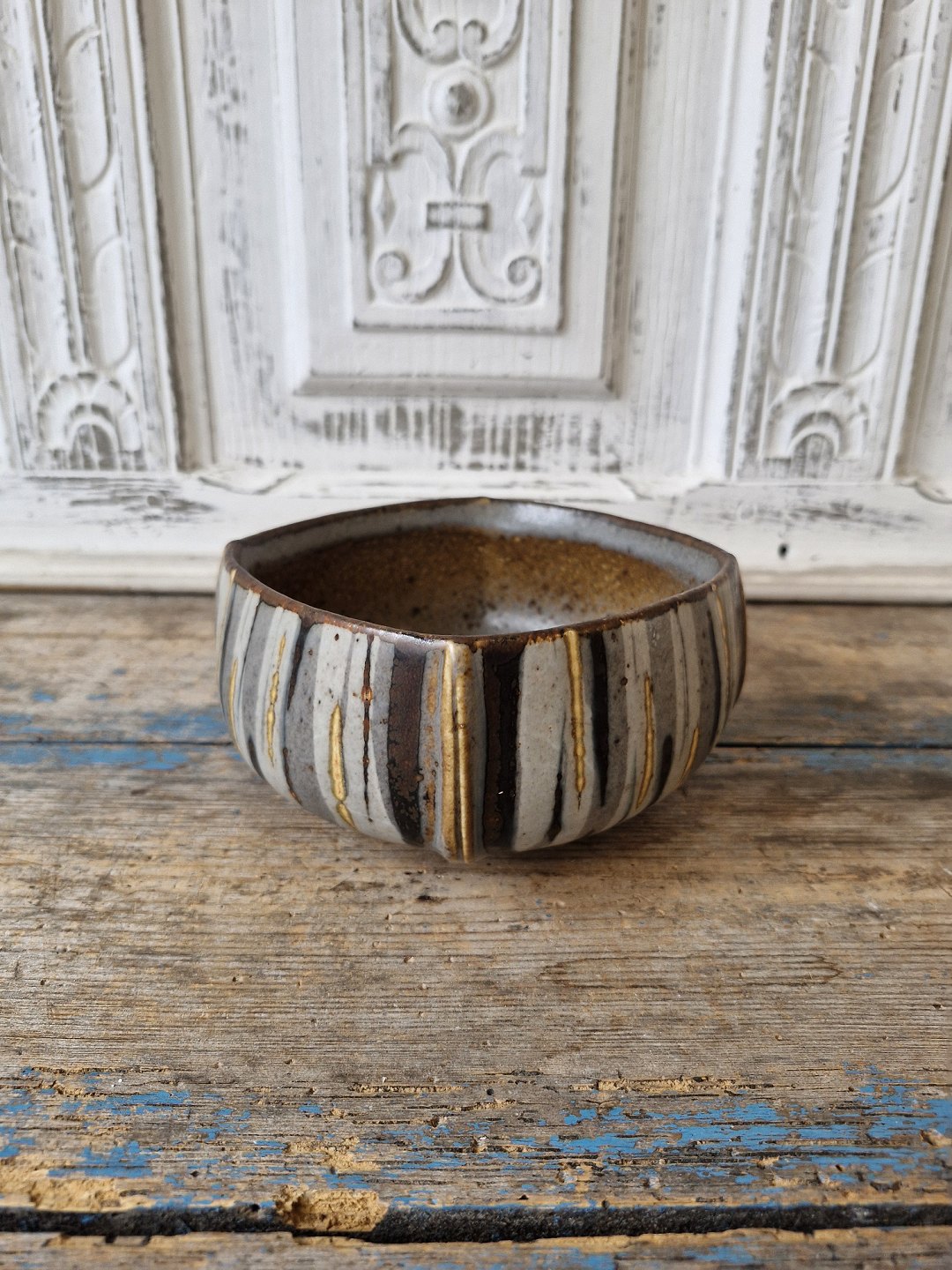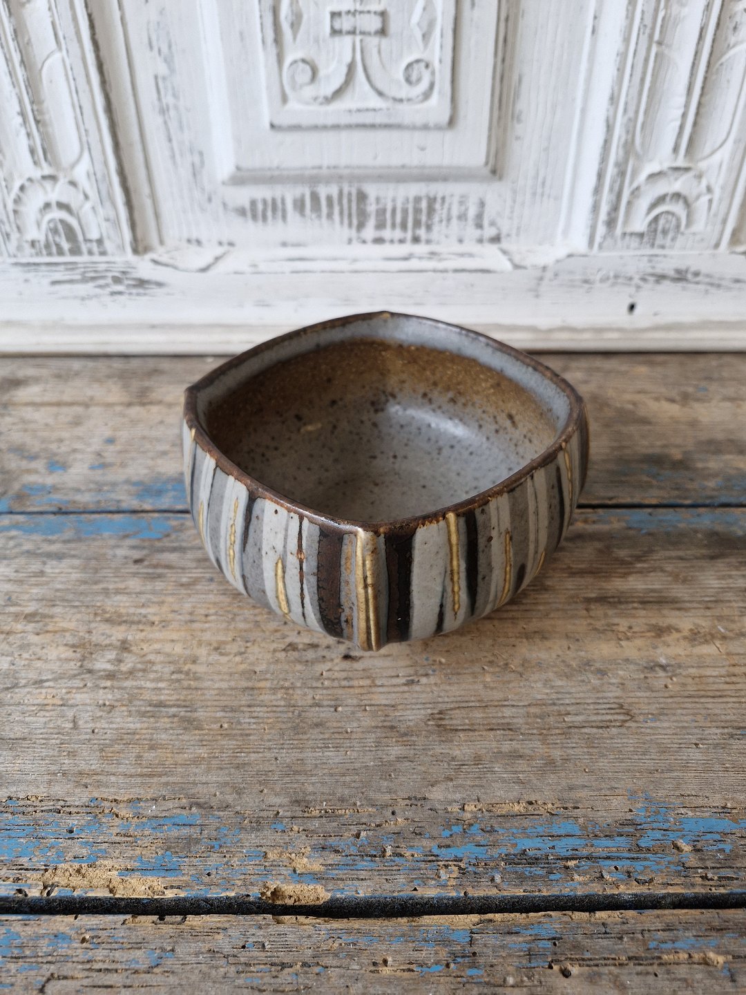 Ivan Weiss for Royal Copenhagen skål i stentøj med smuk glasur i grå, sort og brune nuancer no. 22562
