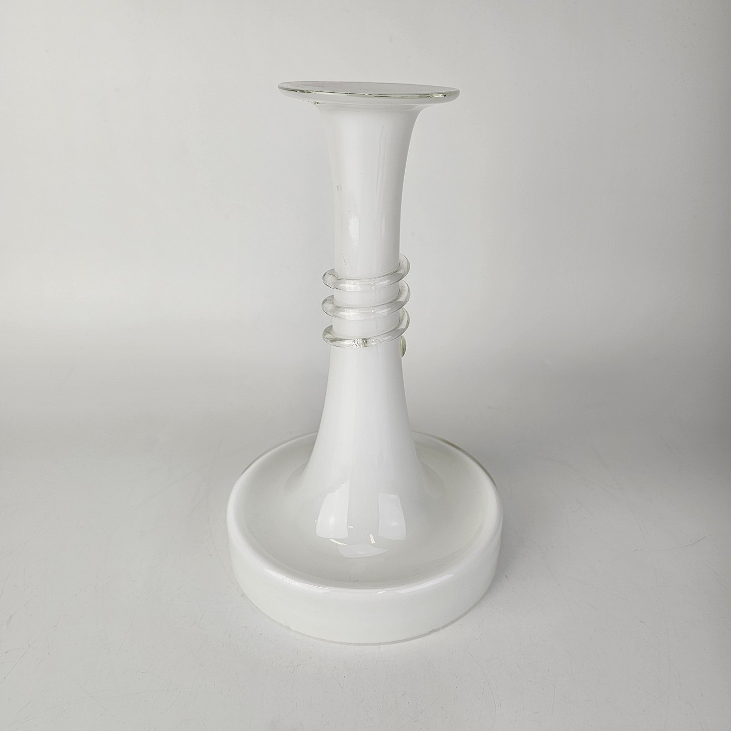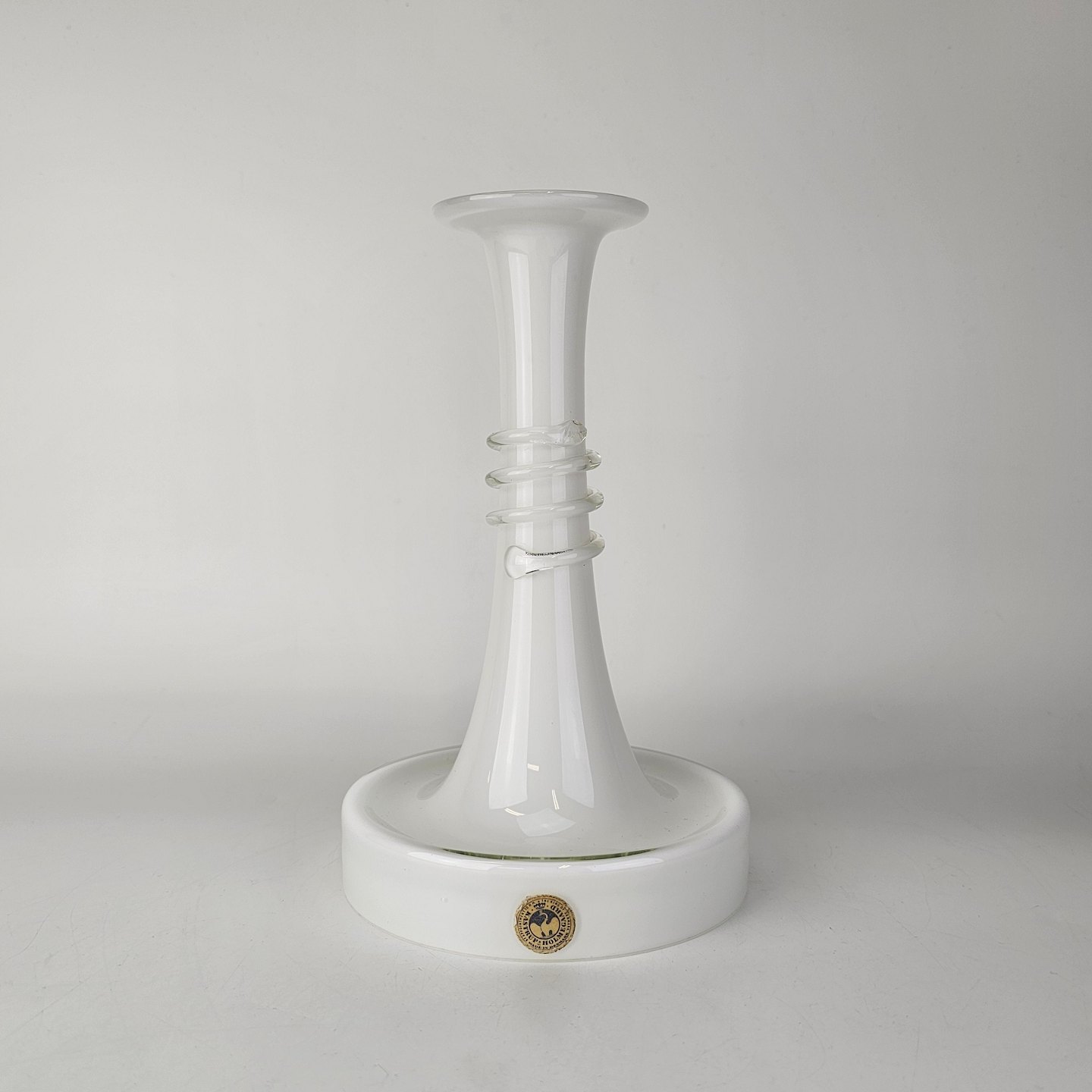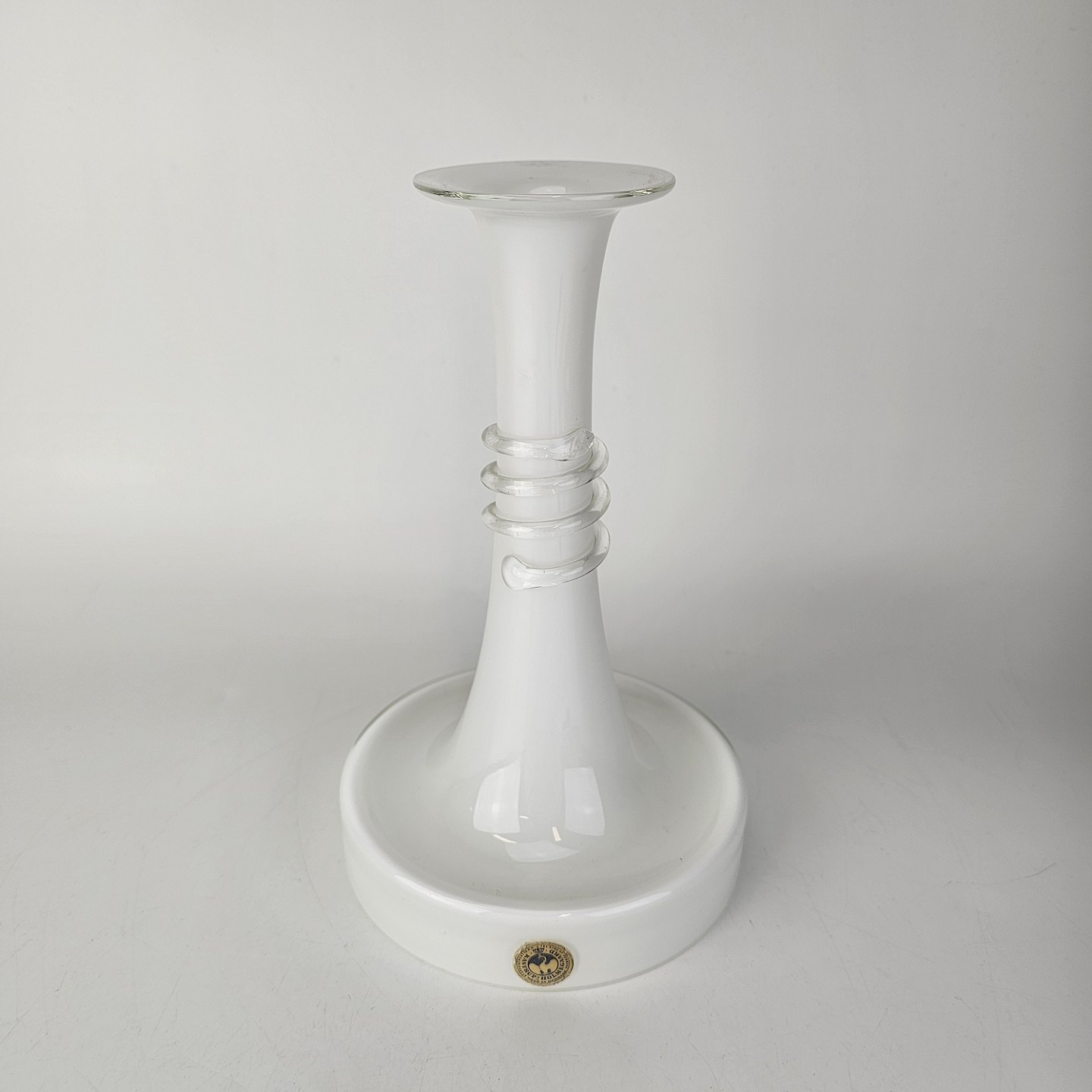 Lysestage i hvidt opalglas omviklet med en klar glastråd fra serien Napoli