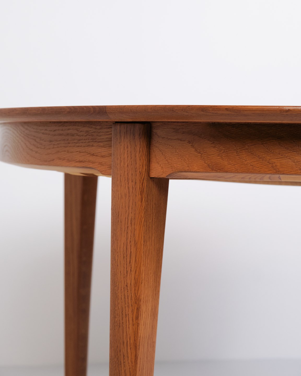 Rundt spisebord i egetræ fra 1960’erne. Dansk design i klassisk stil.