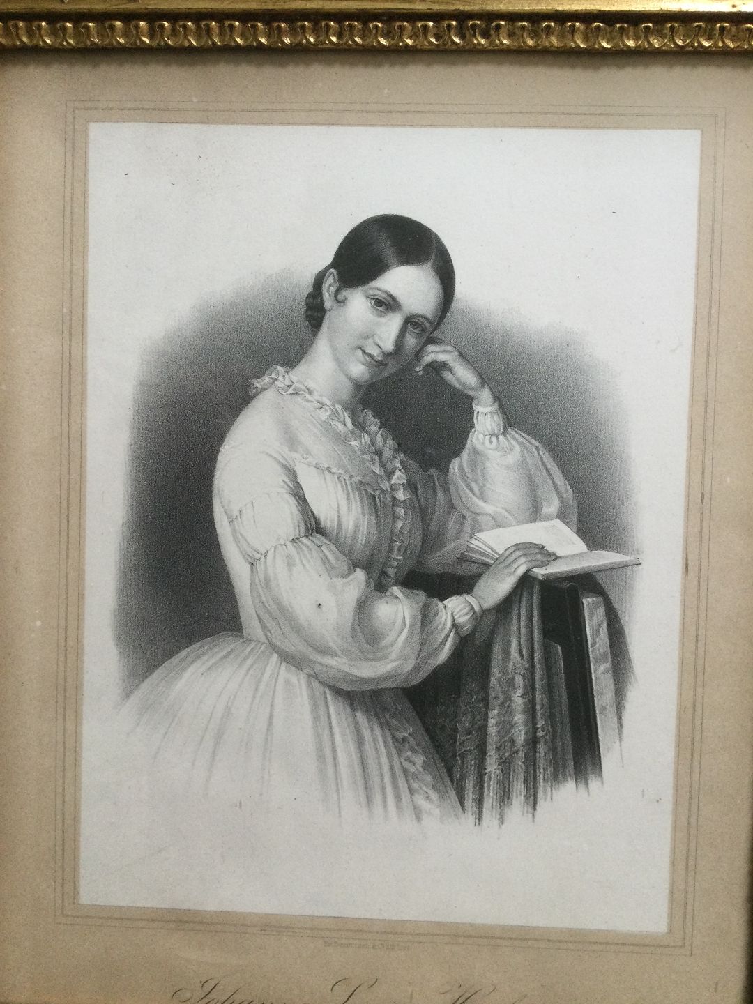 Portræt af Skuespillerinde Johanne Louise Heiberg - litografi af Em. Bærentzen ca. 1850.