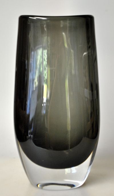 Orrefors glasvase PU 3918, 20. årh. Sverige. Design: Sven Palmqvist (1906 - 1984). Røgfarvet glas. Mundblæst. Signeret. H: 25 cm. B: 12 cm.